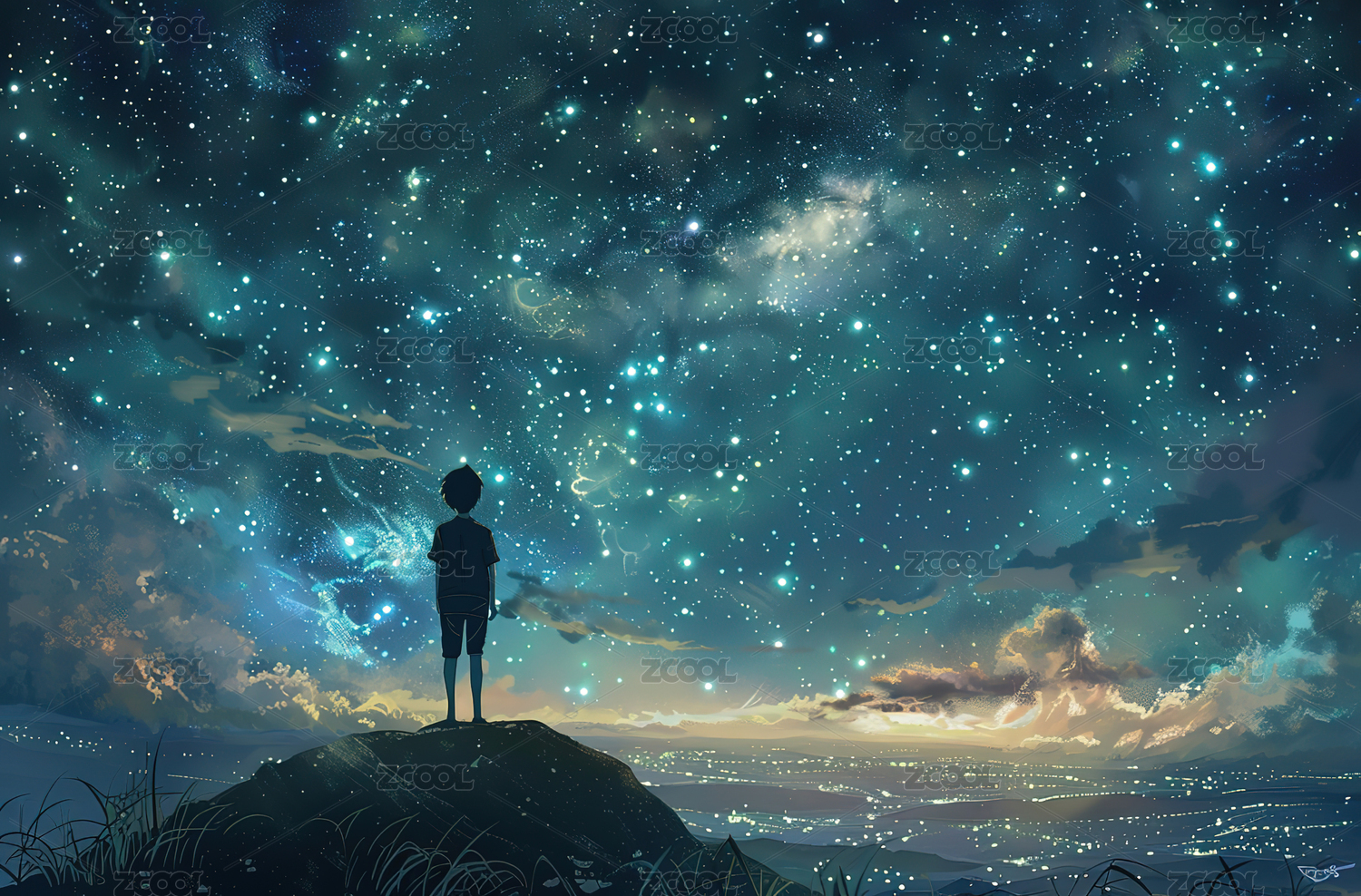 星空下的小小身影
