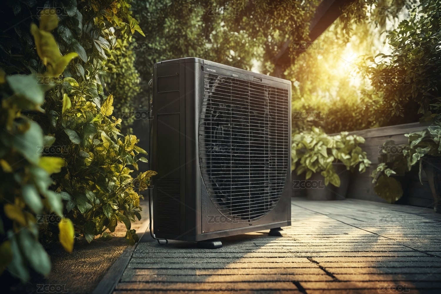 石头露台上的户外空气净化器
