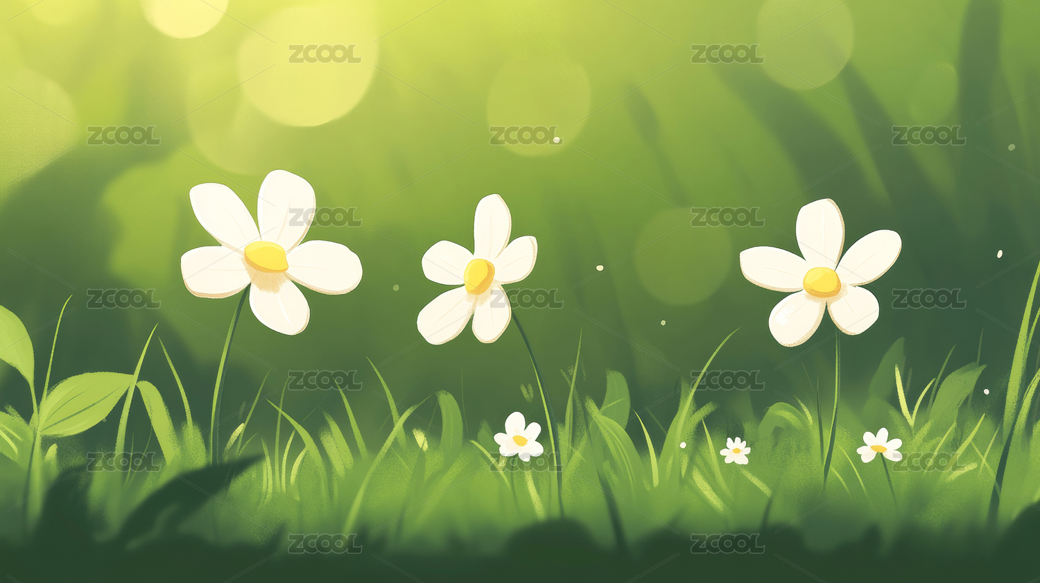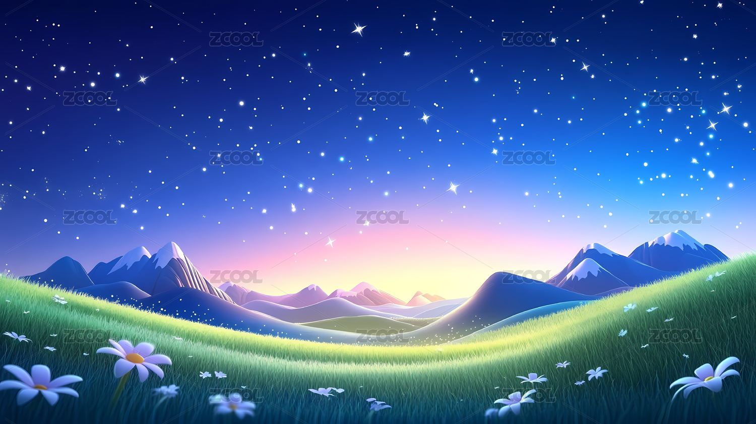 月亮,星星,夜晚,花朵,白色花朵,绿叶,植物,自然,风景,田野