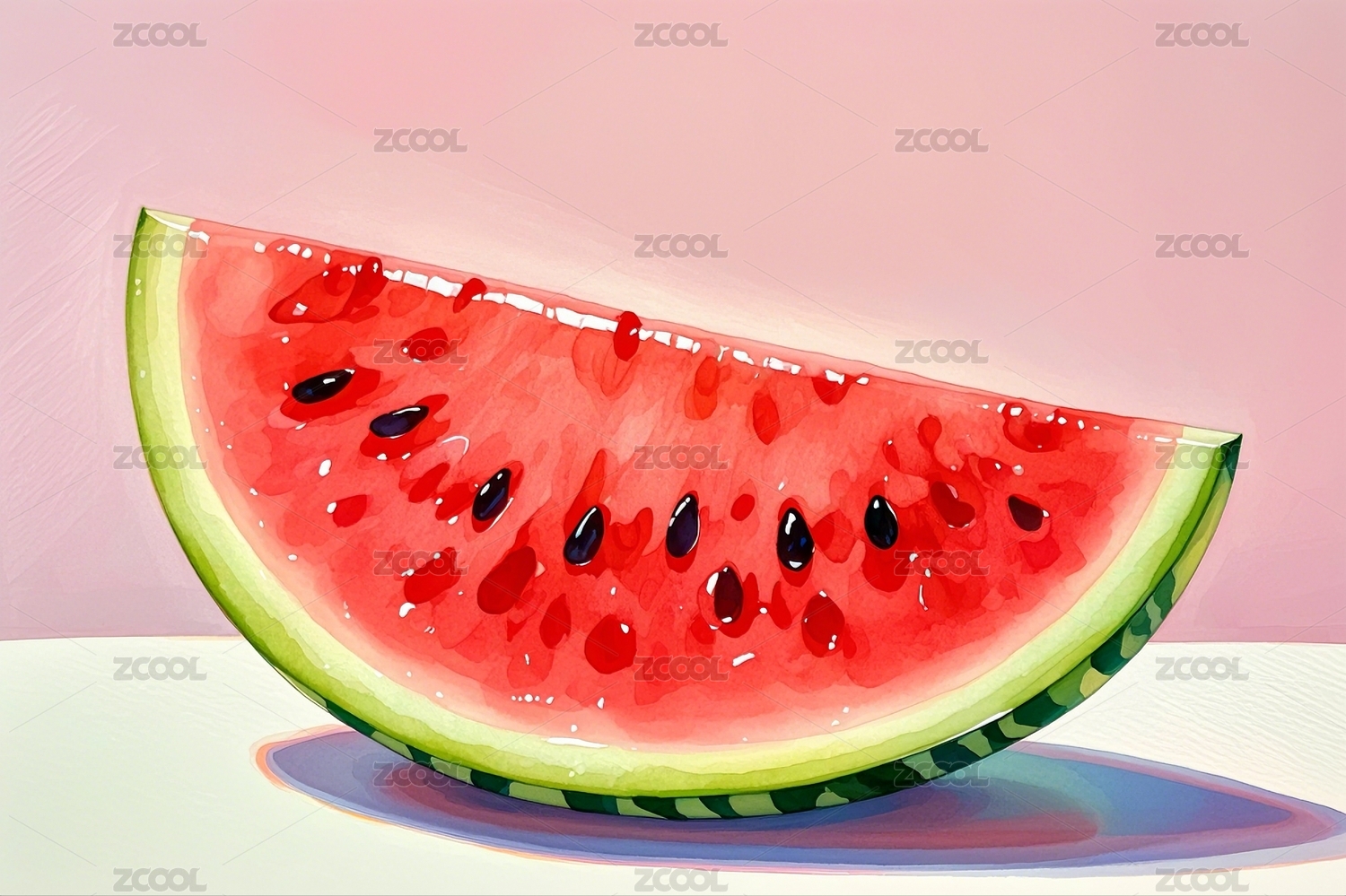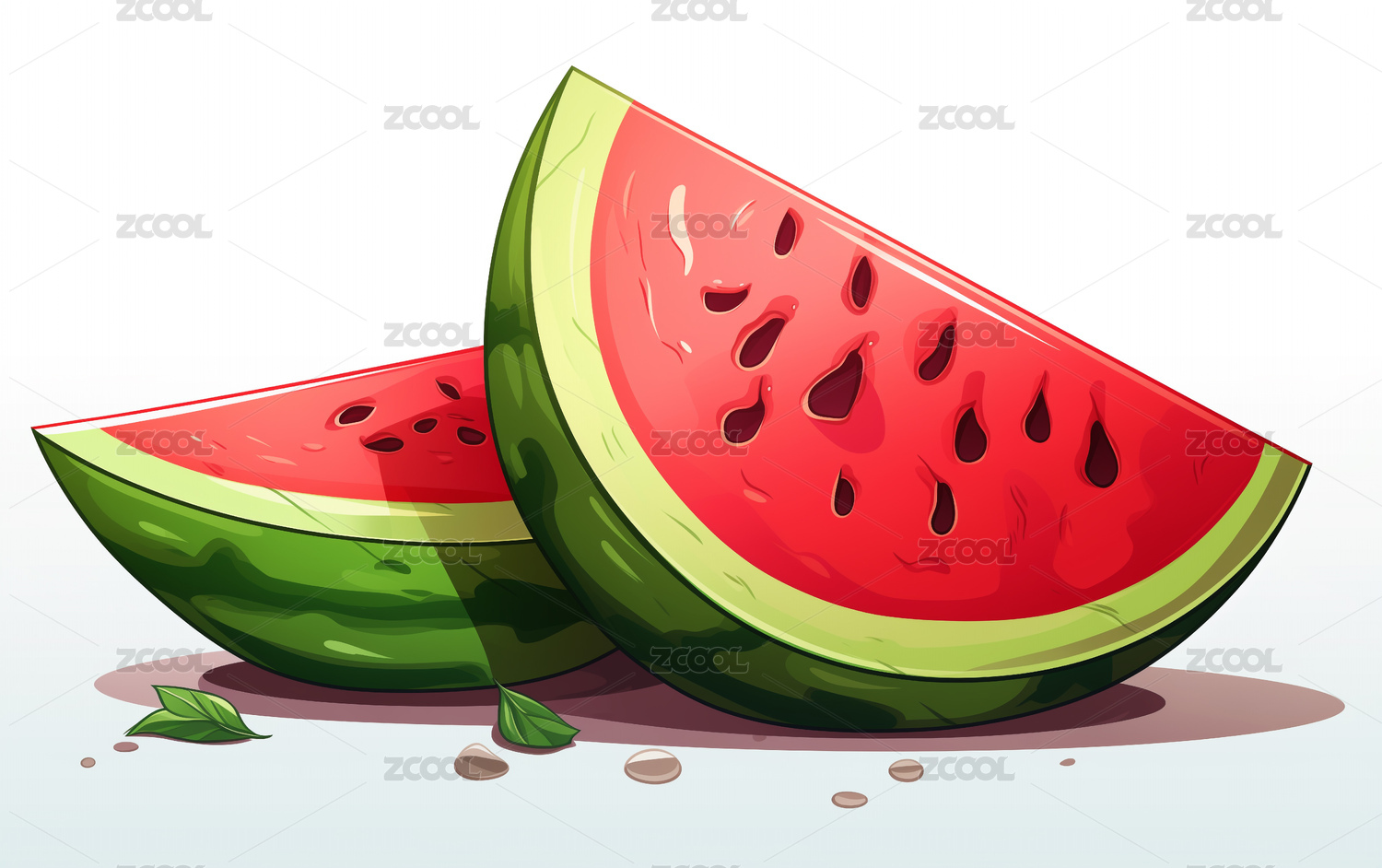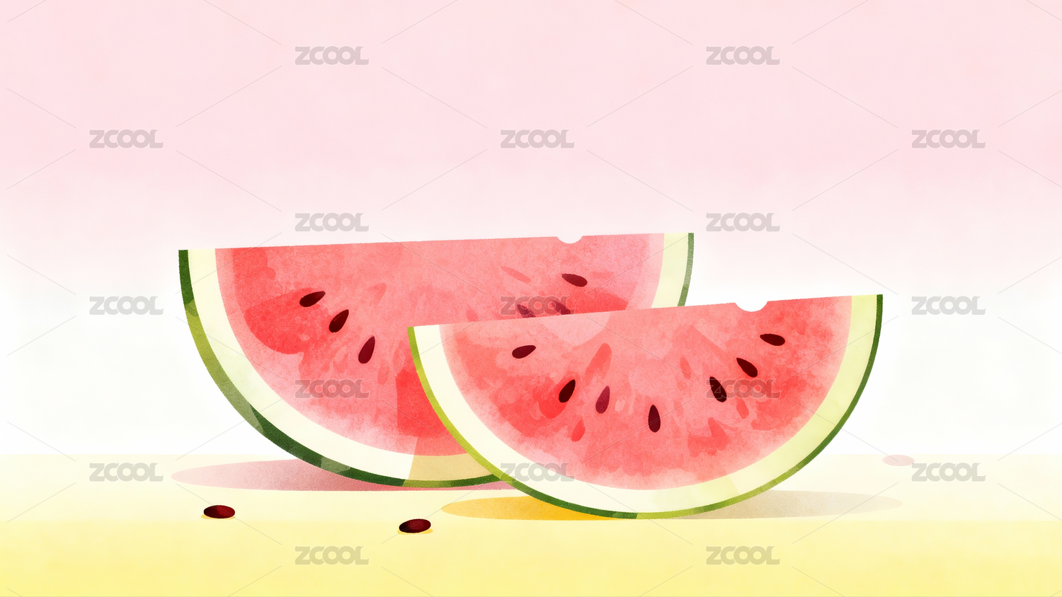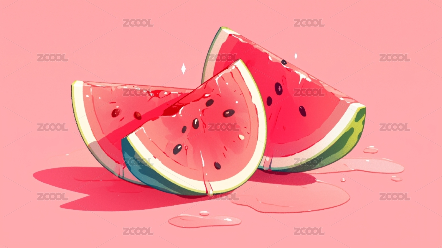 夏天解暑绿色水果西瓜果汁大暑节气美食插画