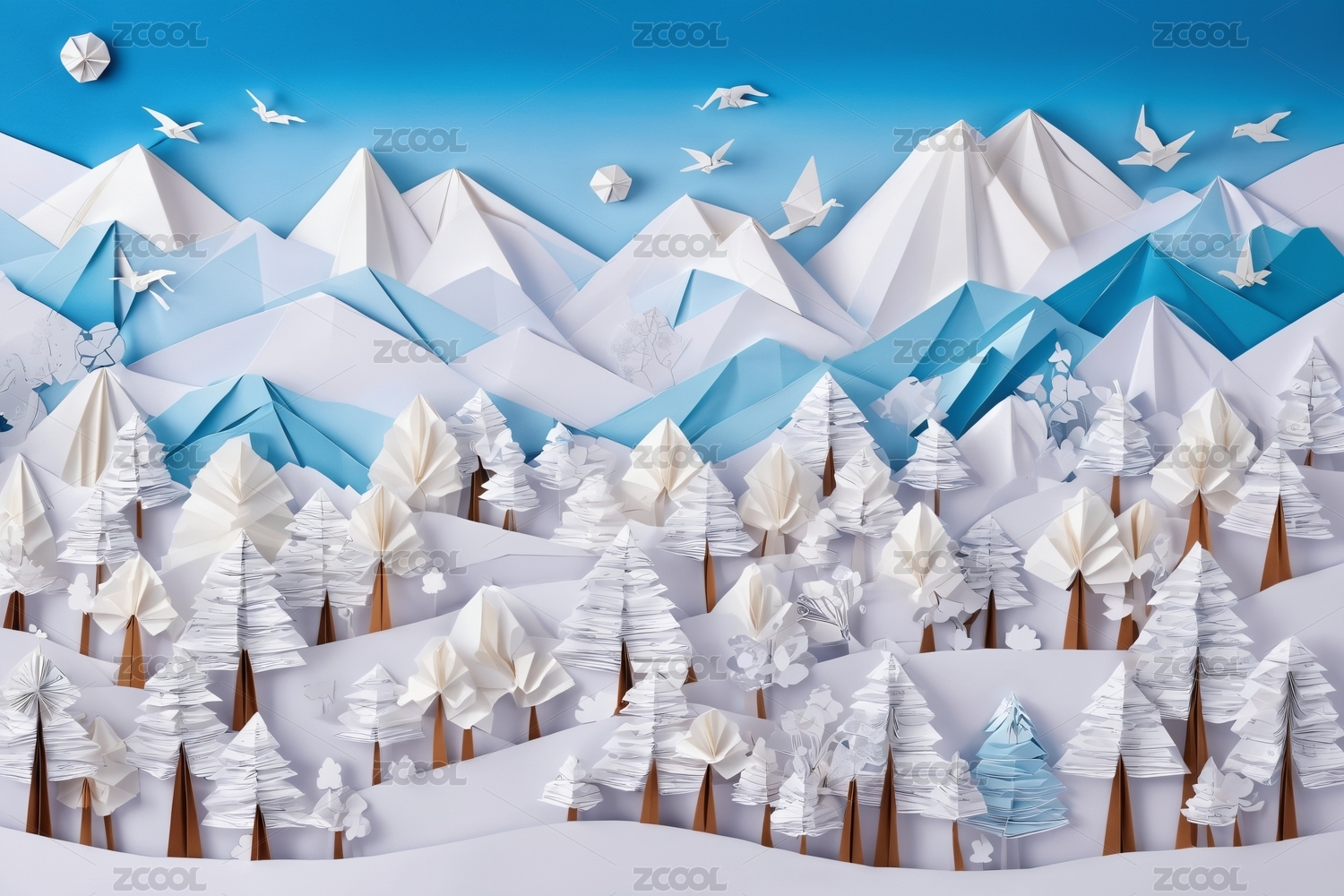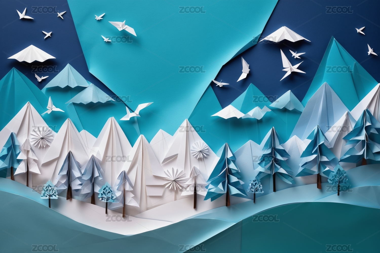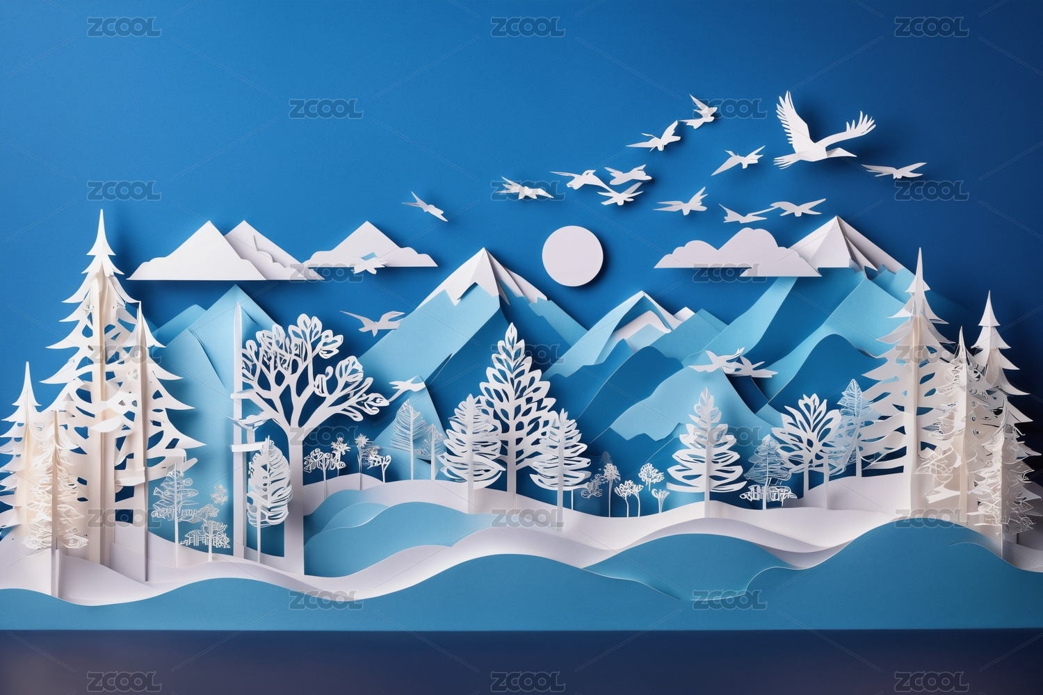 立体纸艺山川森林景观
