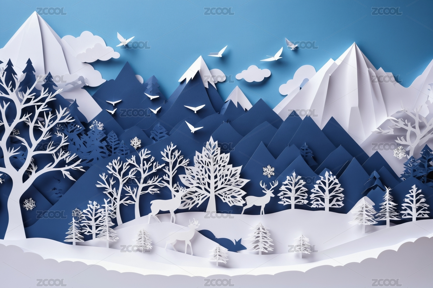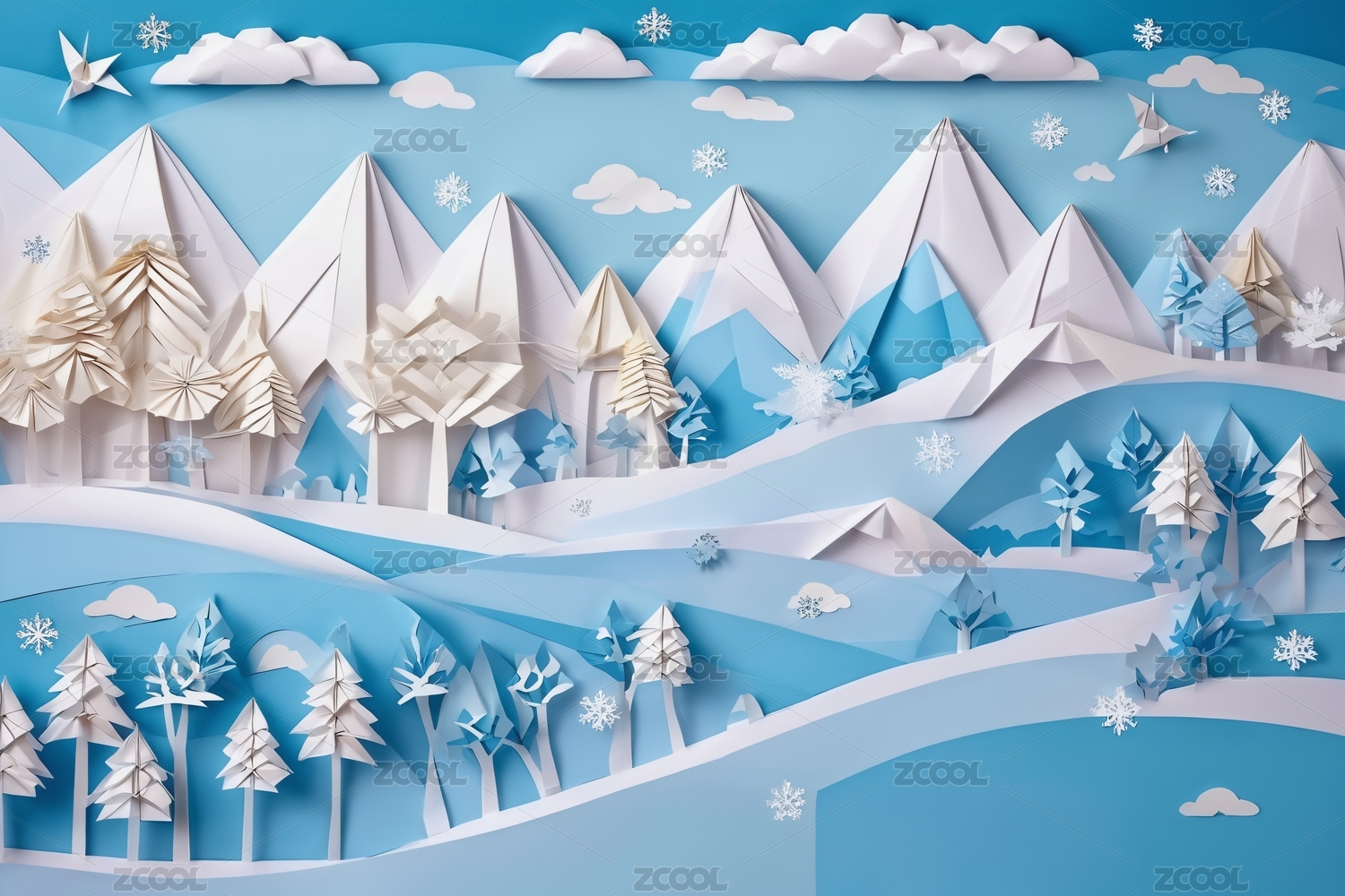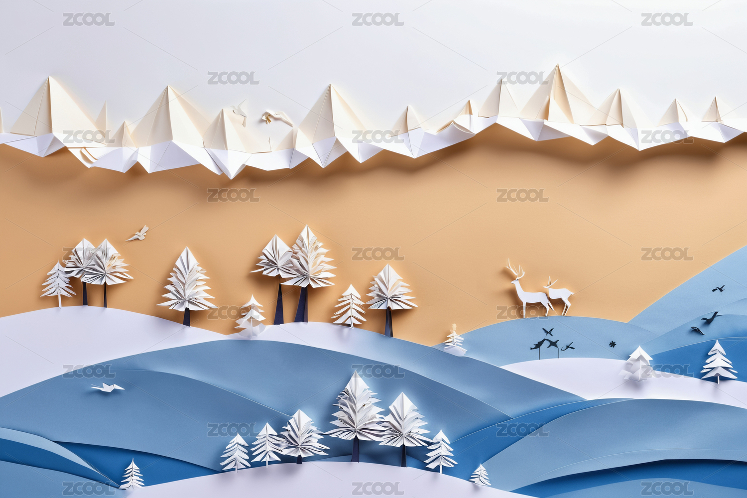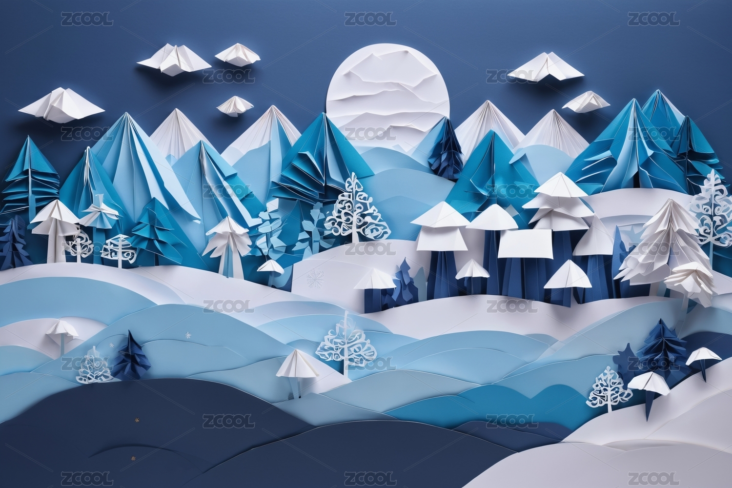 立体纸艺山川森林景观