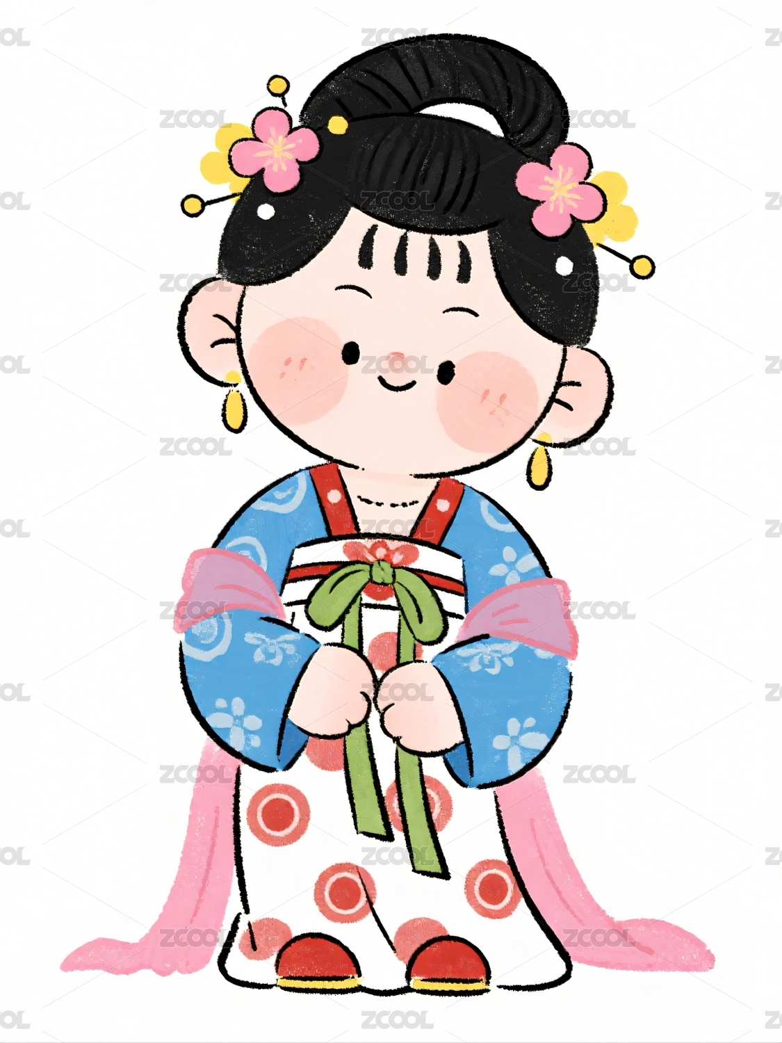 古风,人物插画,少女插画,桃色系,甜美,可爱,简约风格,可爱女孩,卖萌,率真