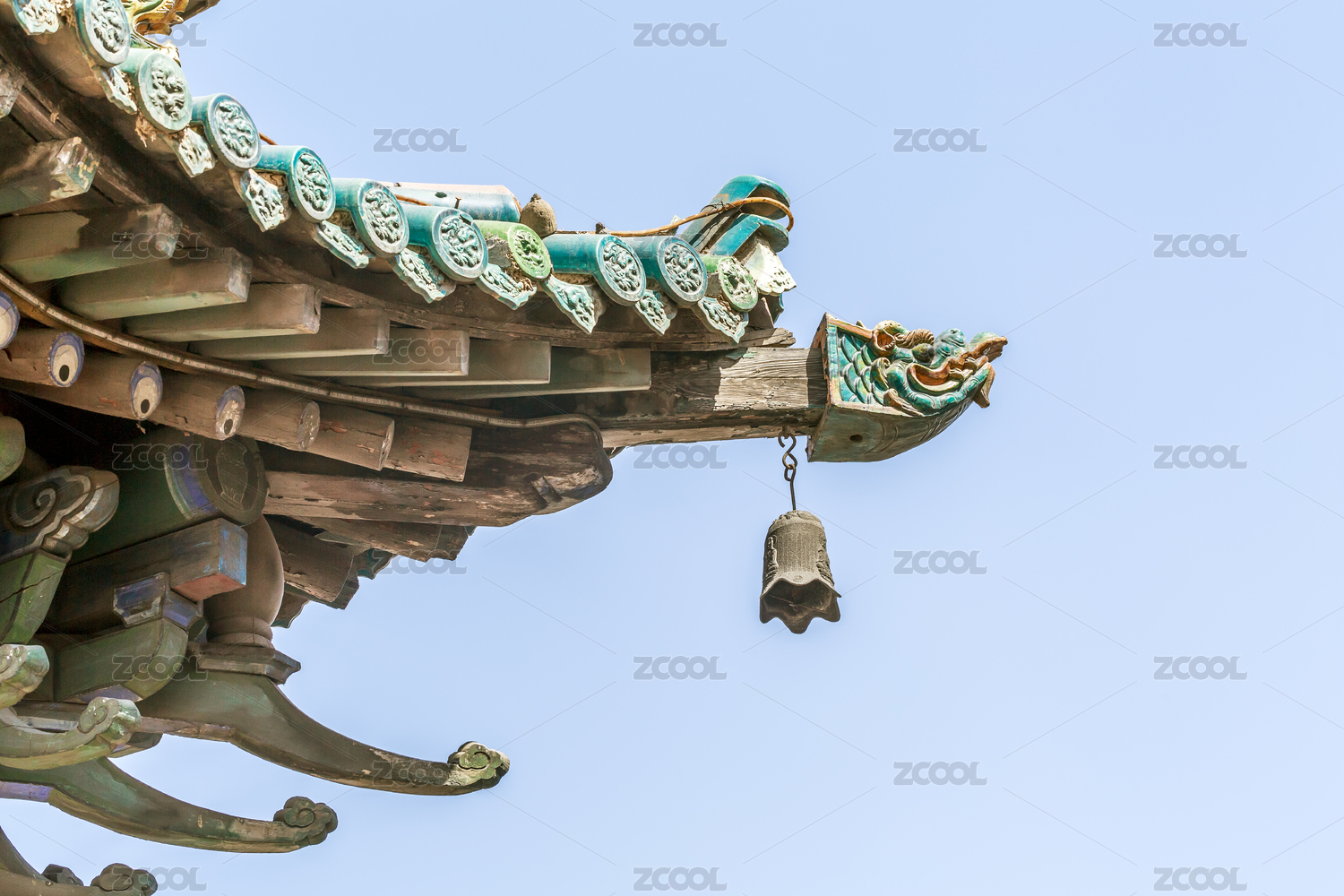 西安广仁寺传统建筑飞檐上的脊兽和风铃