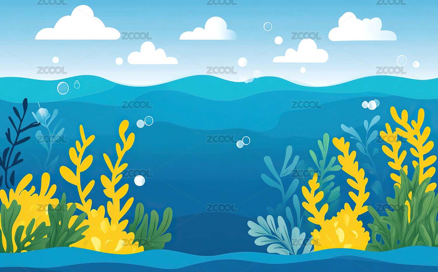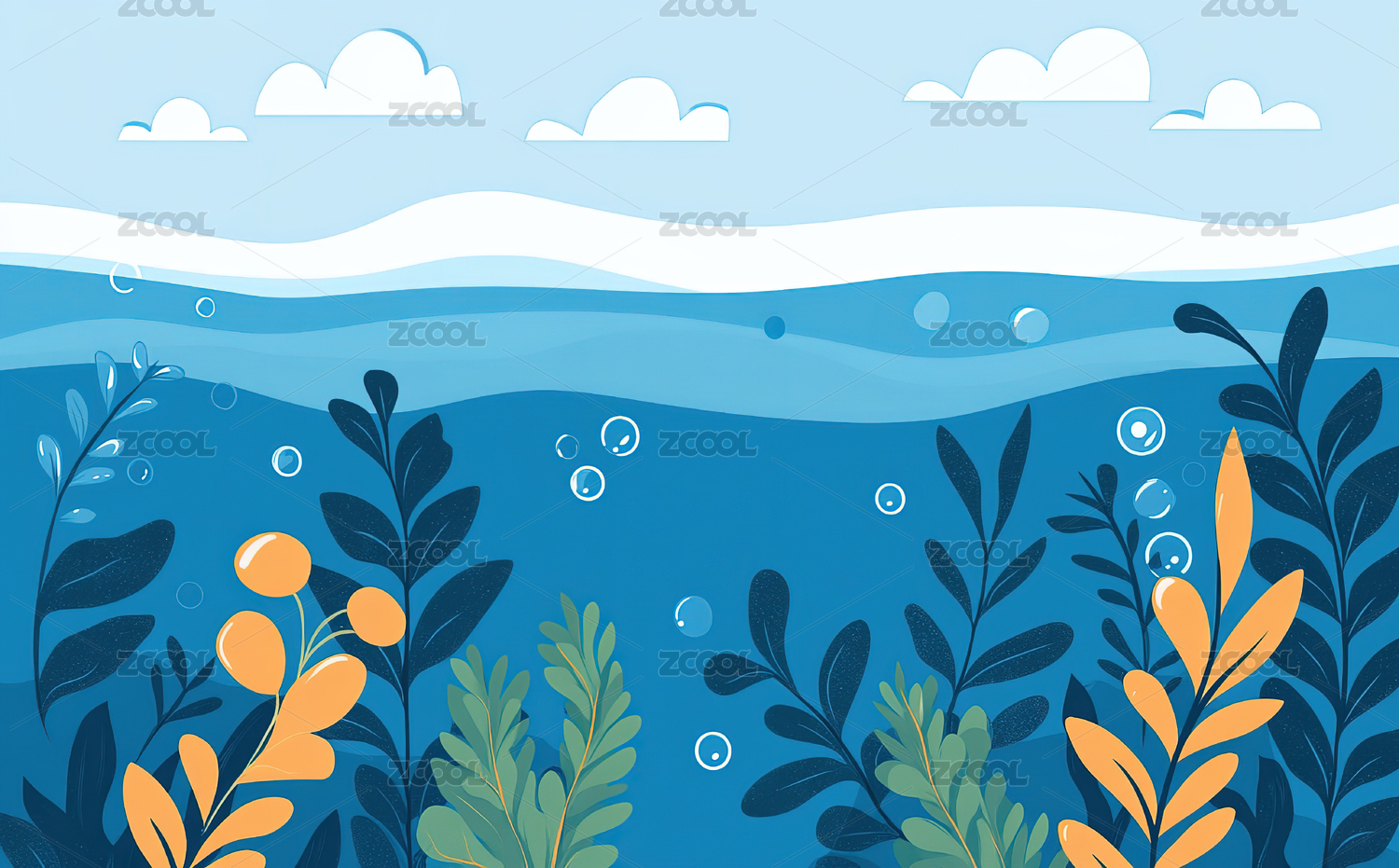 动物,云,水,天空,问候,夏天,插画,设计,户外,环境