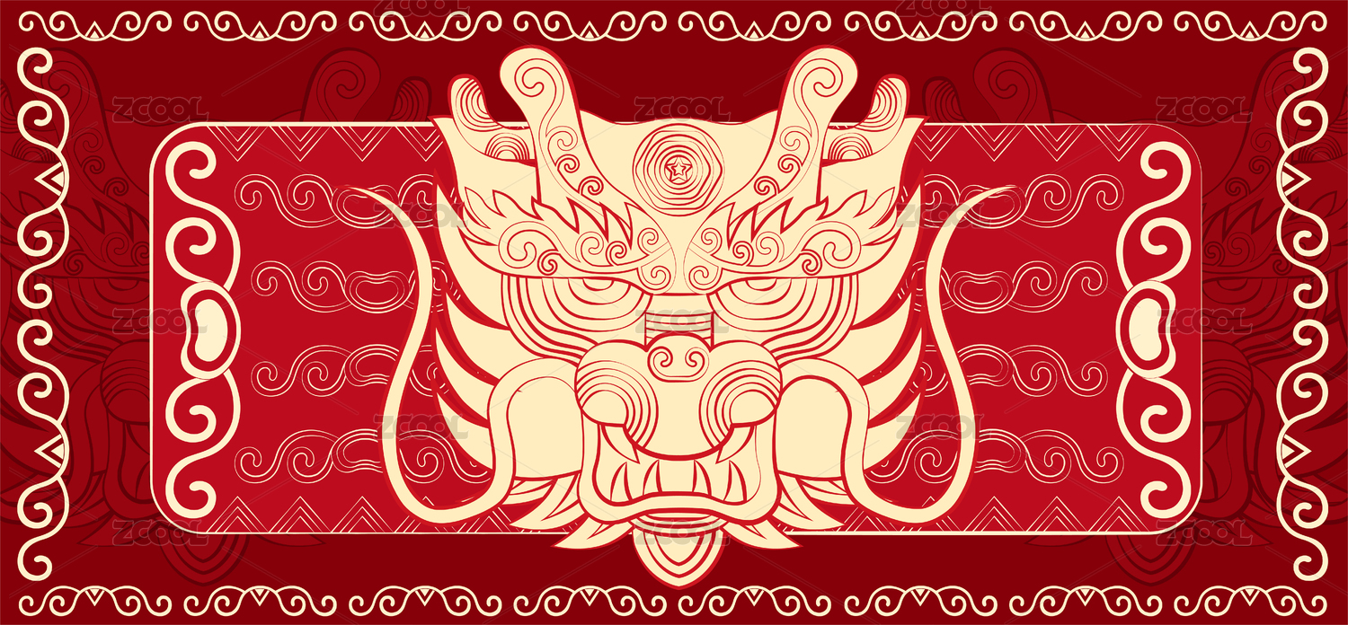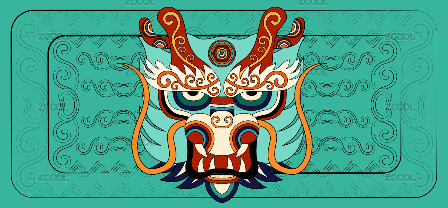 国潮十二生肖龙头传统装饰纹样卡通形象