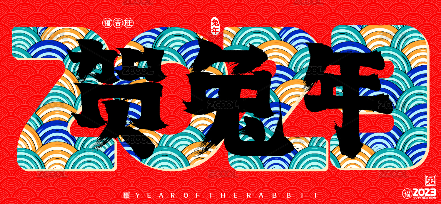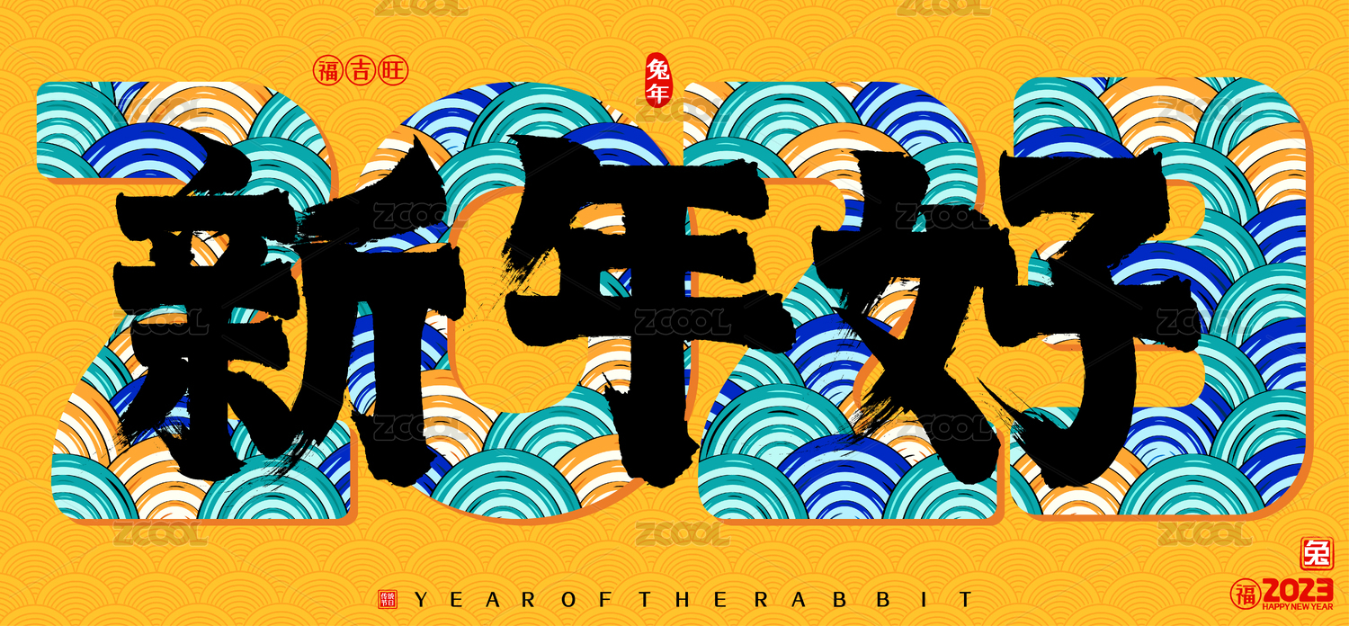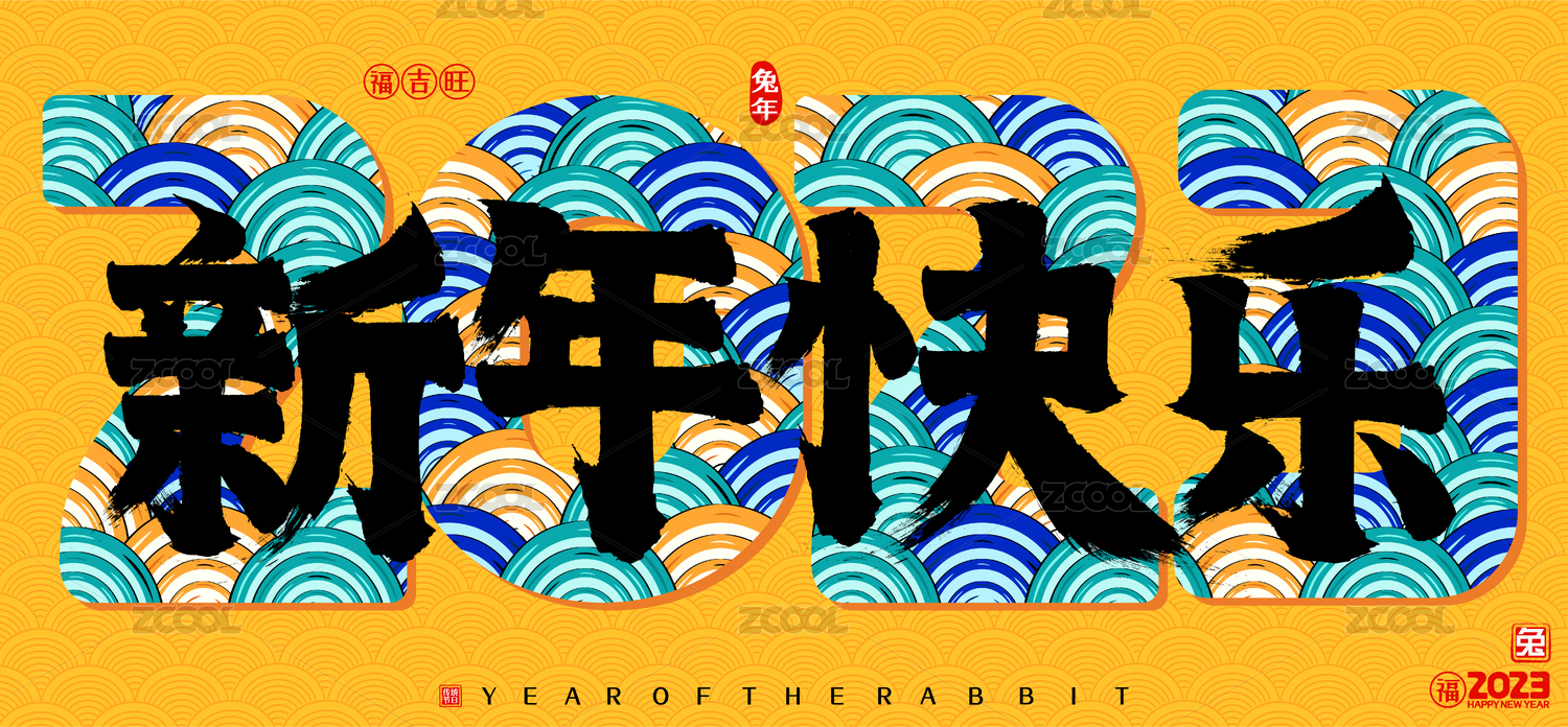2023兔年穿新衣简约国潮云纹矢量书法字