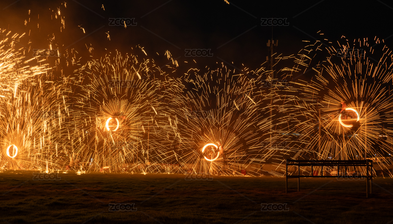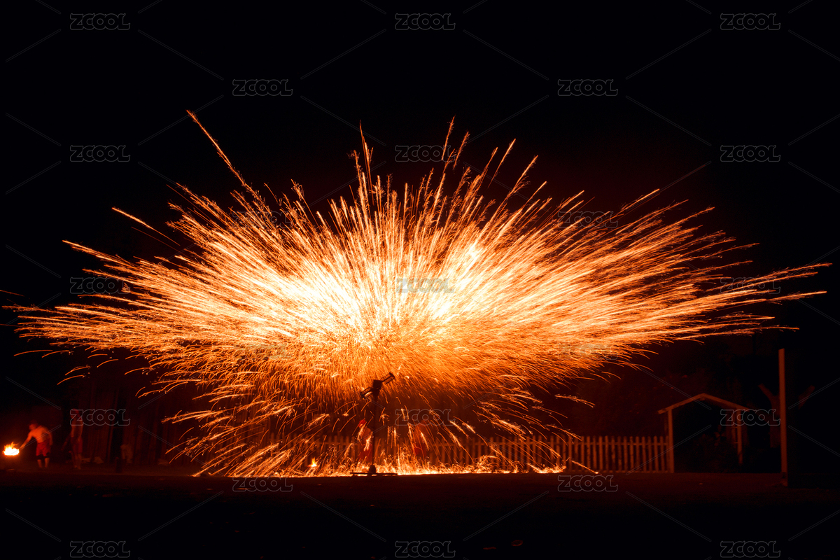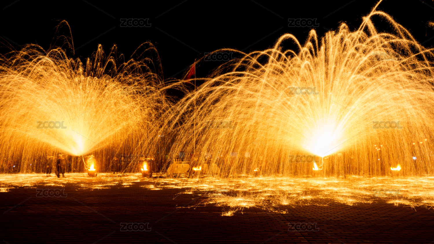 杭州良渚址亨乐园的文化非遗打铁花表演