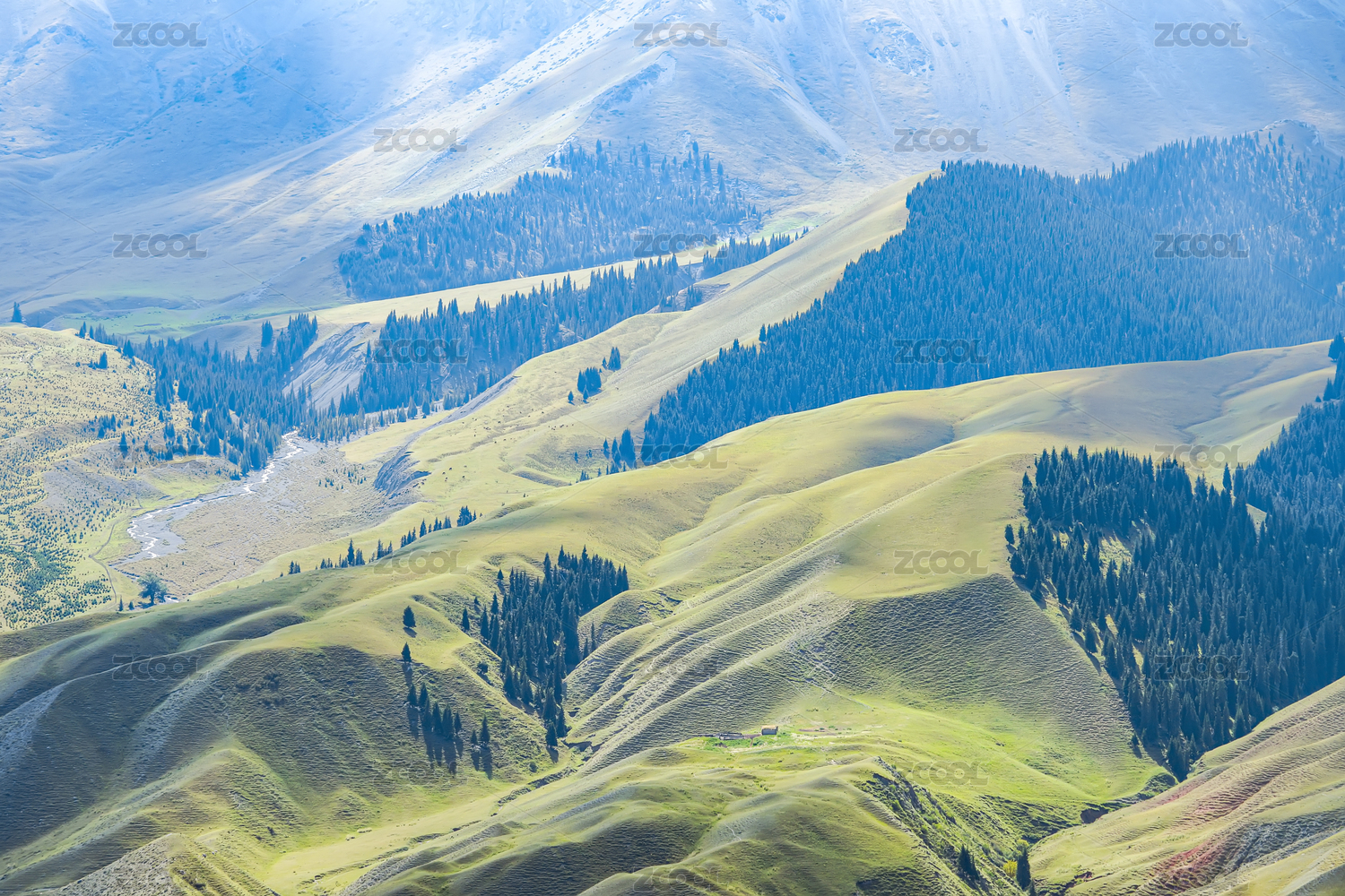 中国新疆伊犁天山脚下的天然牧场