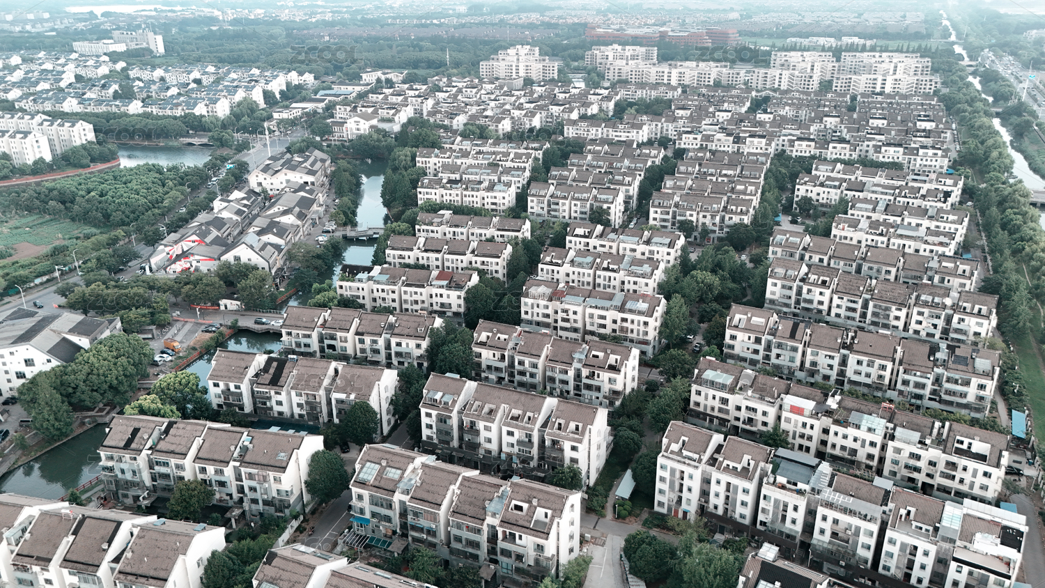 连体别墅,别墅,住房,住宅,楼房,人类居住区,航拍,航拍视角,高视角,建筑物