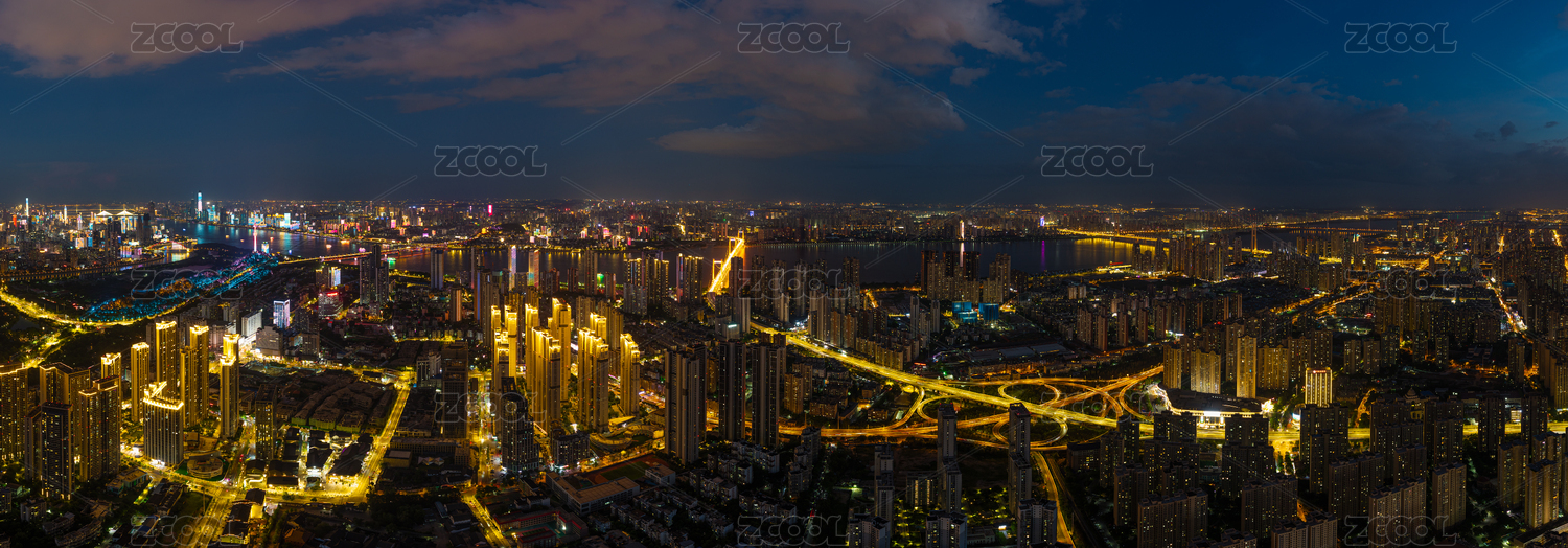 武汉夏日城市航拍傍晚和夜景风光