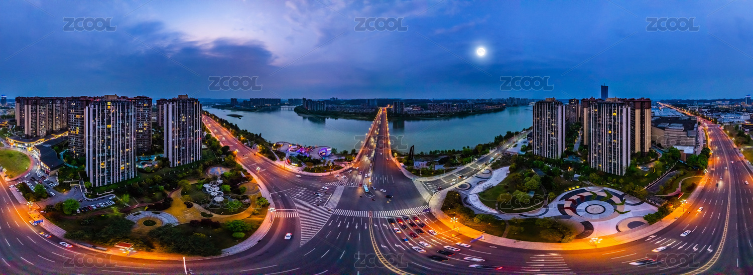四川省乐山市720度全景夜月大渡河外滩