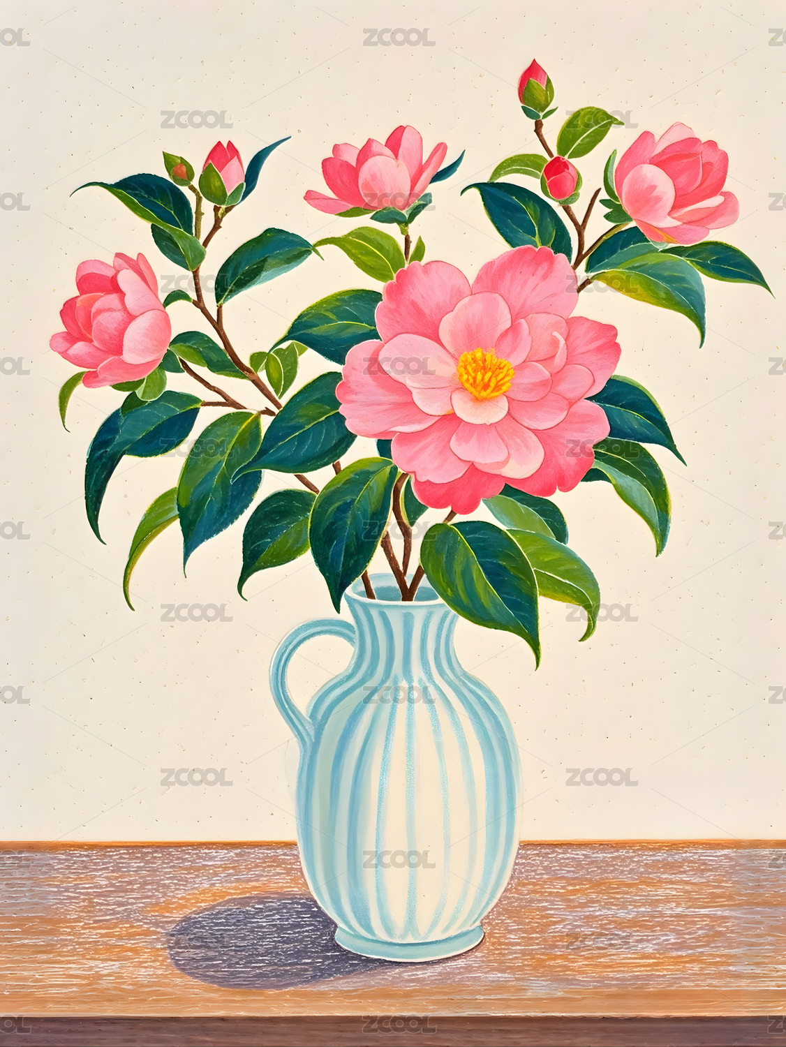 山茶花,山茶花插画,山茶花装饰画,红色山茶花,手绘山茶花