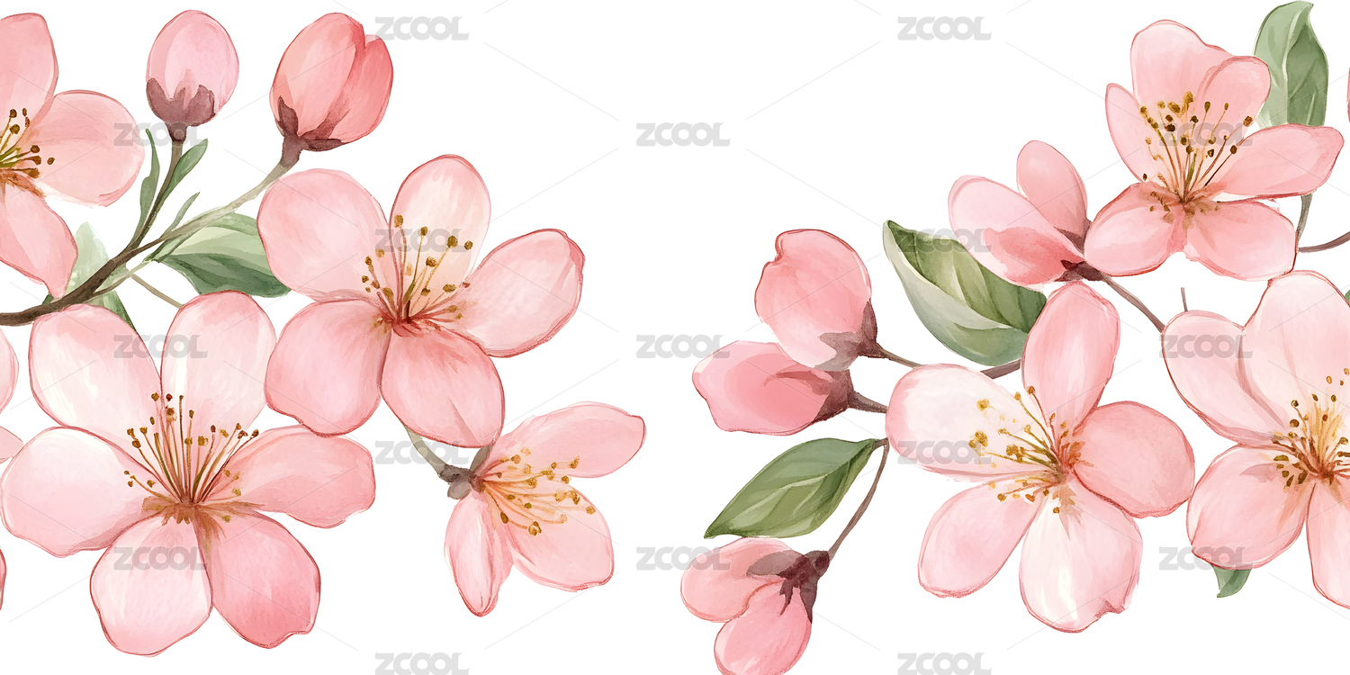 春天 朵朵粉色桃花 唯美卡通春季装饰元素