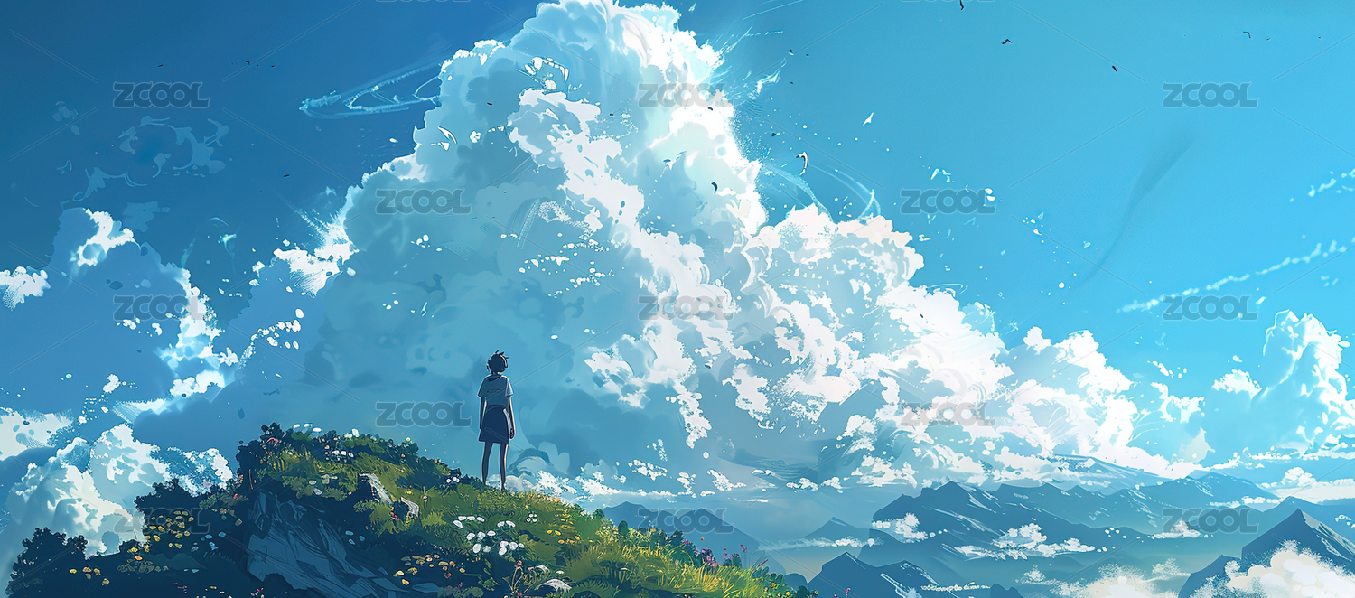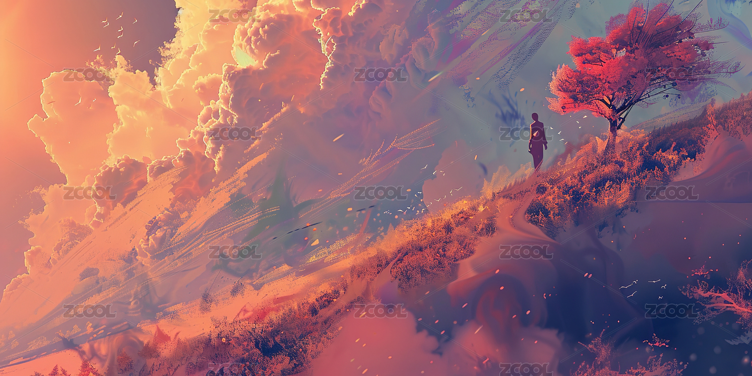 超现实梦幻天空风景人物插画