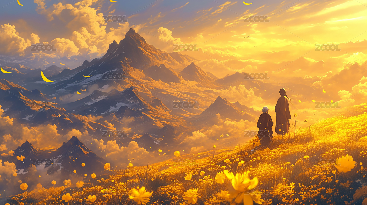 落日黄昏温馨人物插画