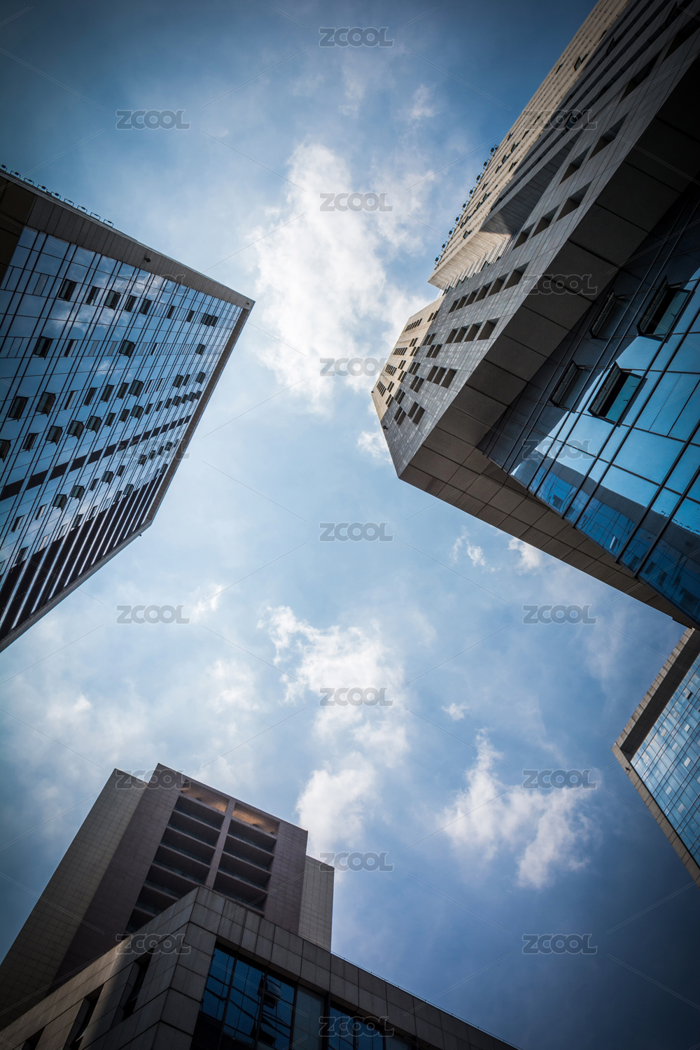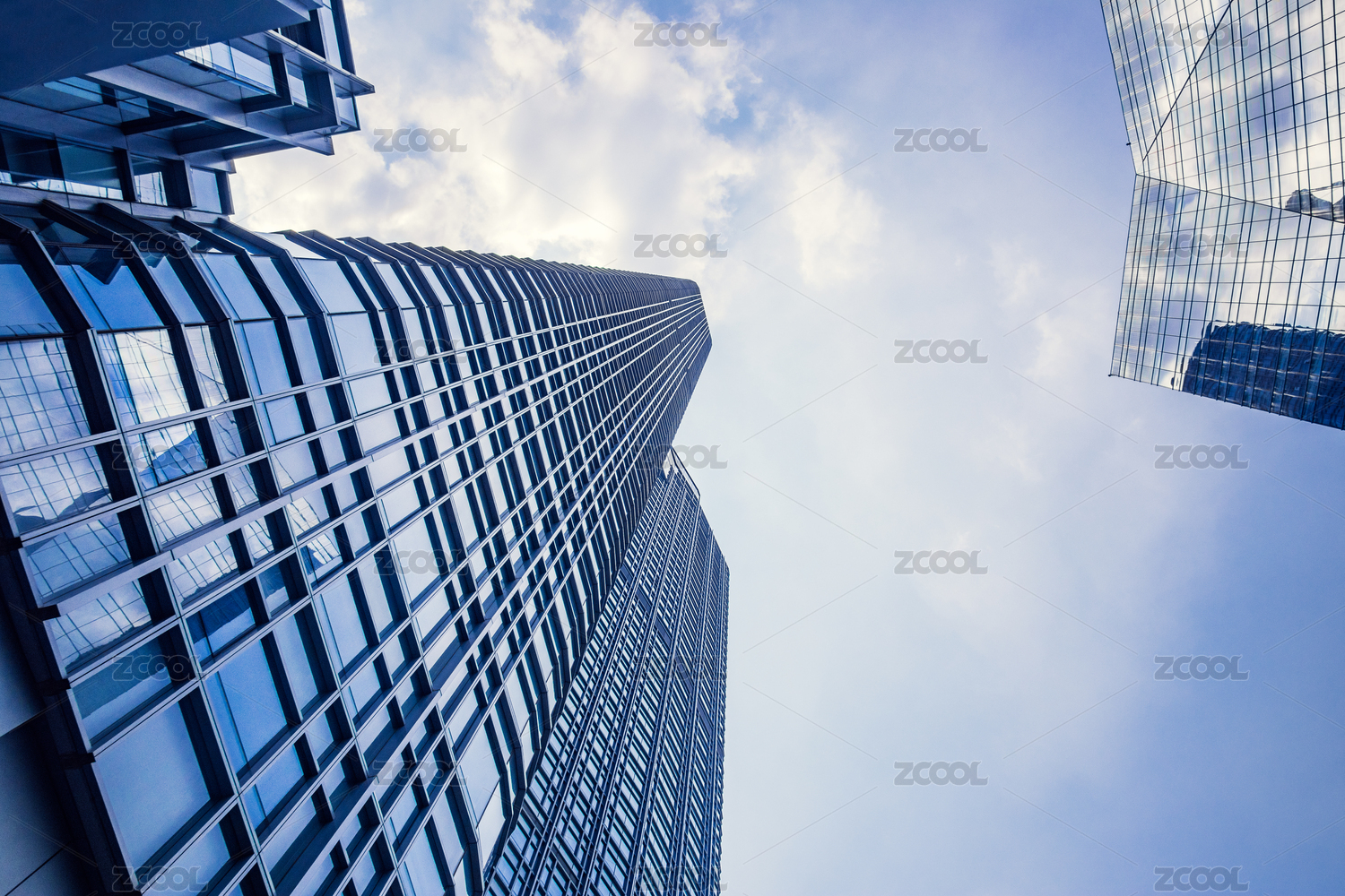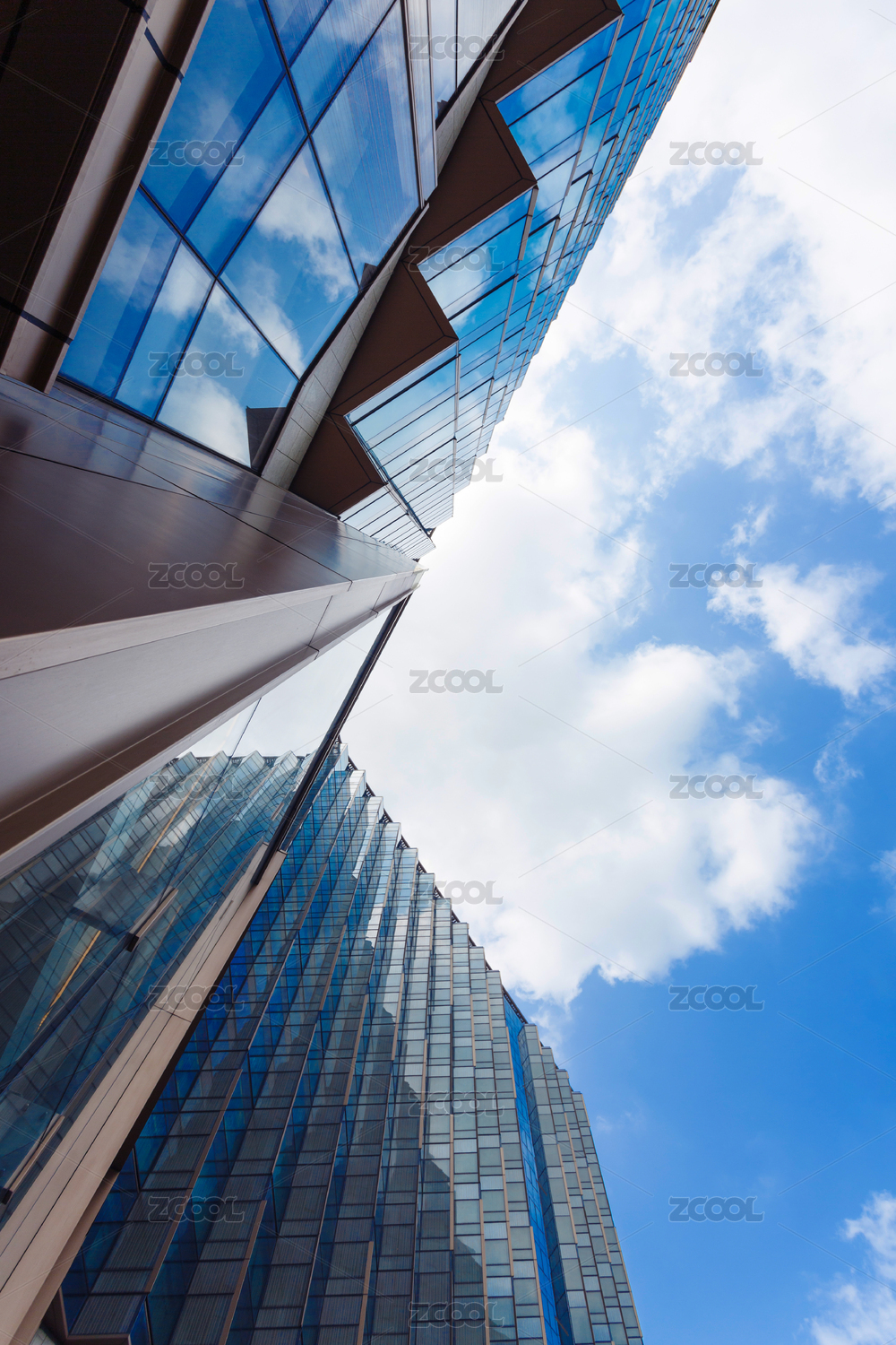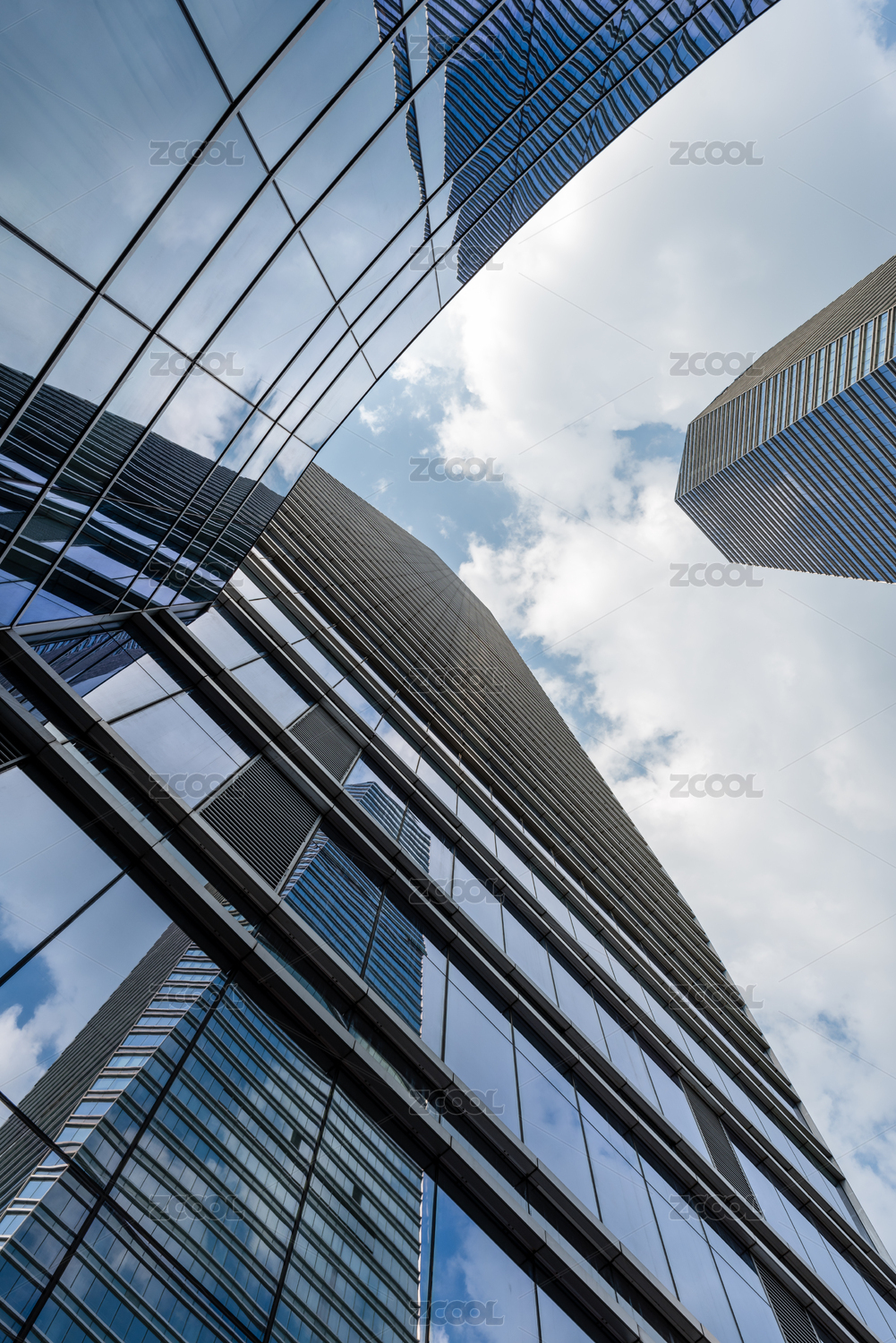 在上海关闭了玻璃建筑细节,china.blue色调图像。