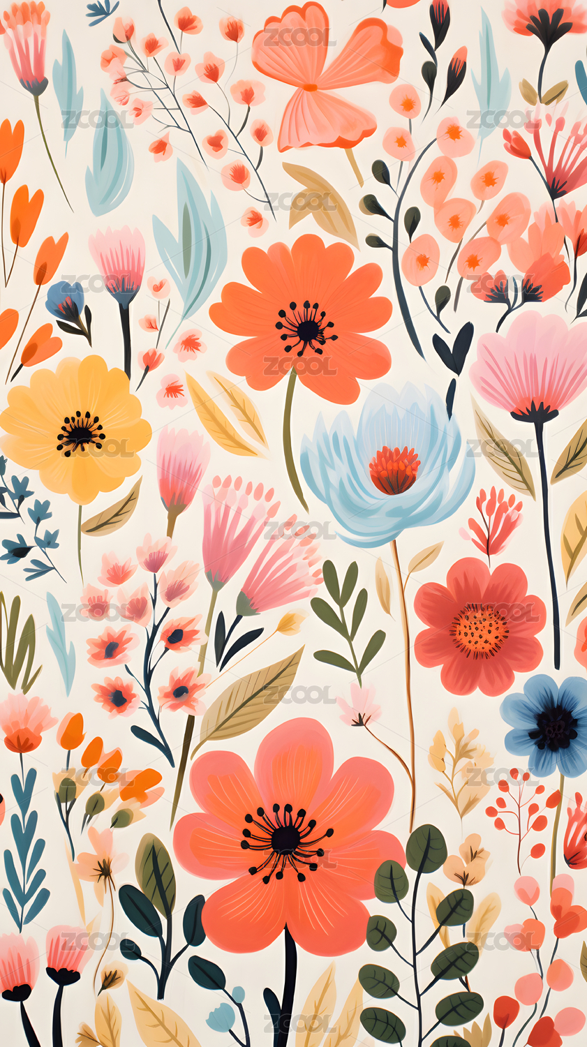 田野,花,叶子,图案,植物,花卉,水彩,复古,自然,图形