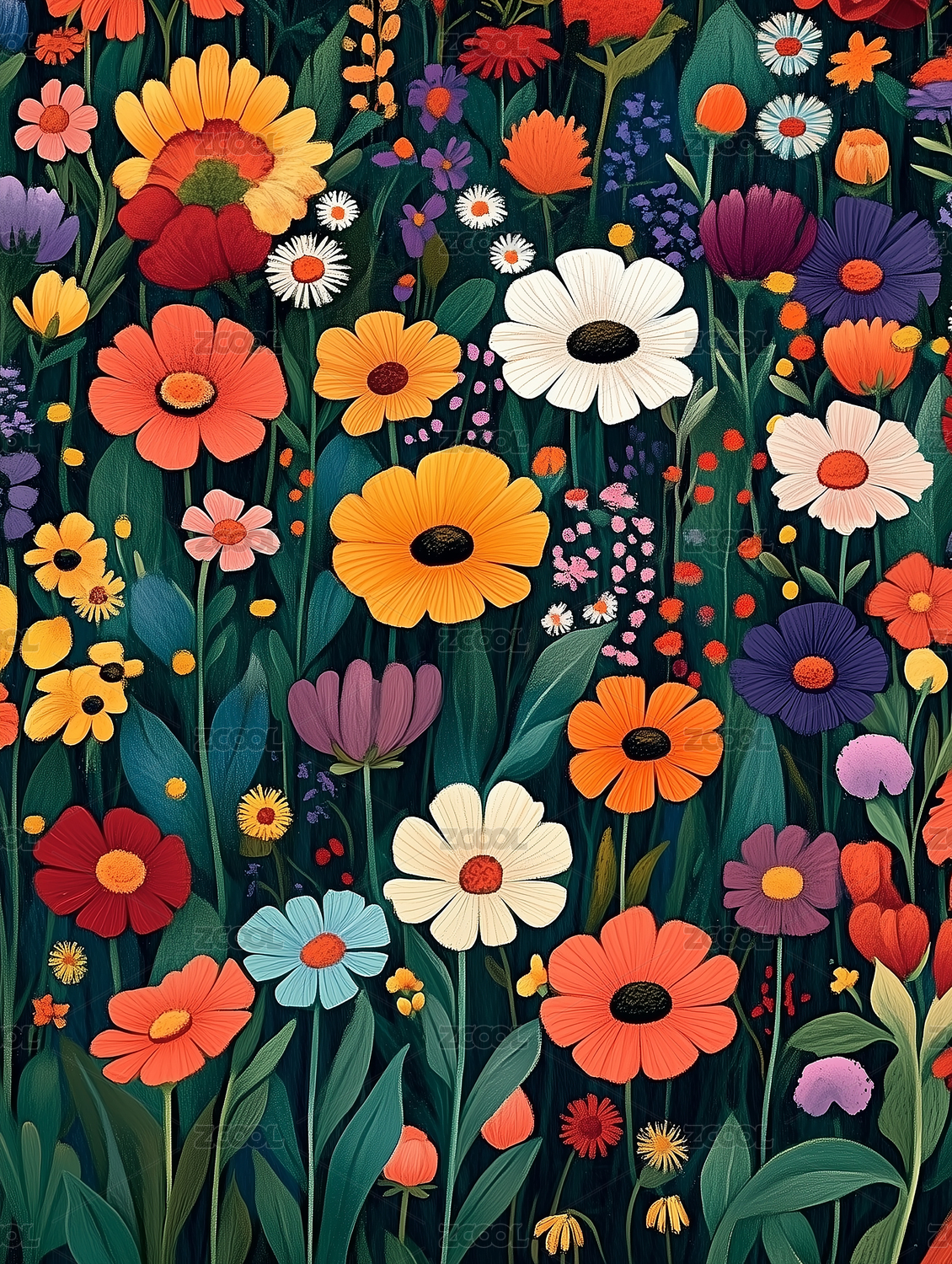数码复古彩色梦幻花朵装饰抽象海报背景