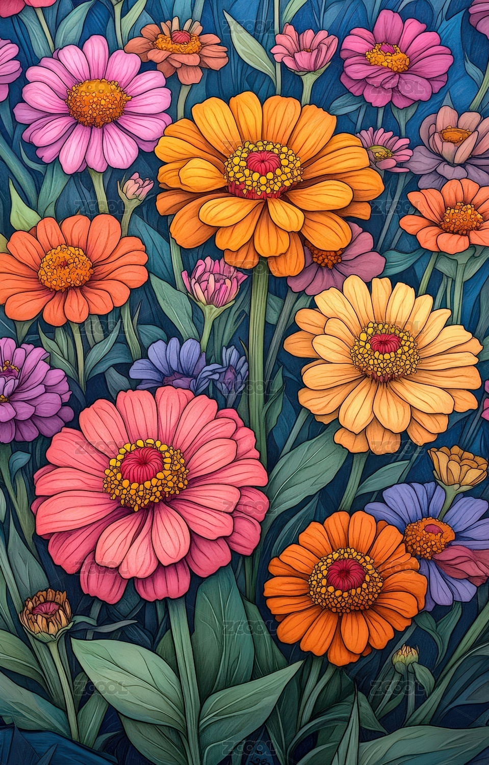 花,阳光,叶,图案,植物,水彩,复古,古董,自然,背景