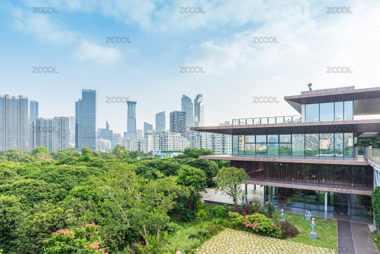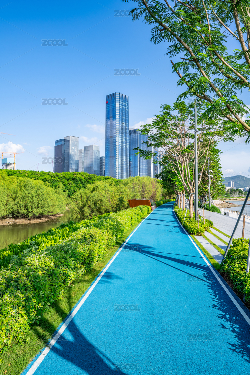 广东深圳福田区香蜜公园栈道和周边建筑风光