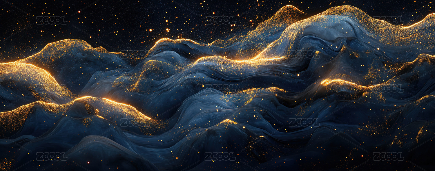 蓝色金箔渐变水墨肌理