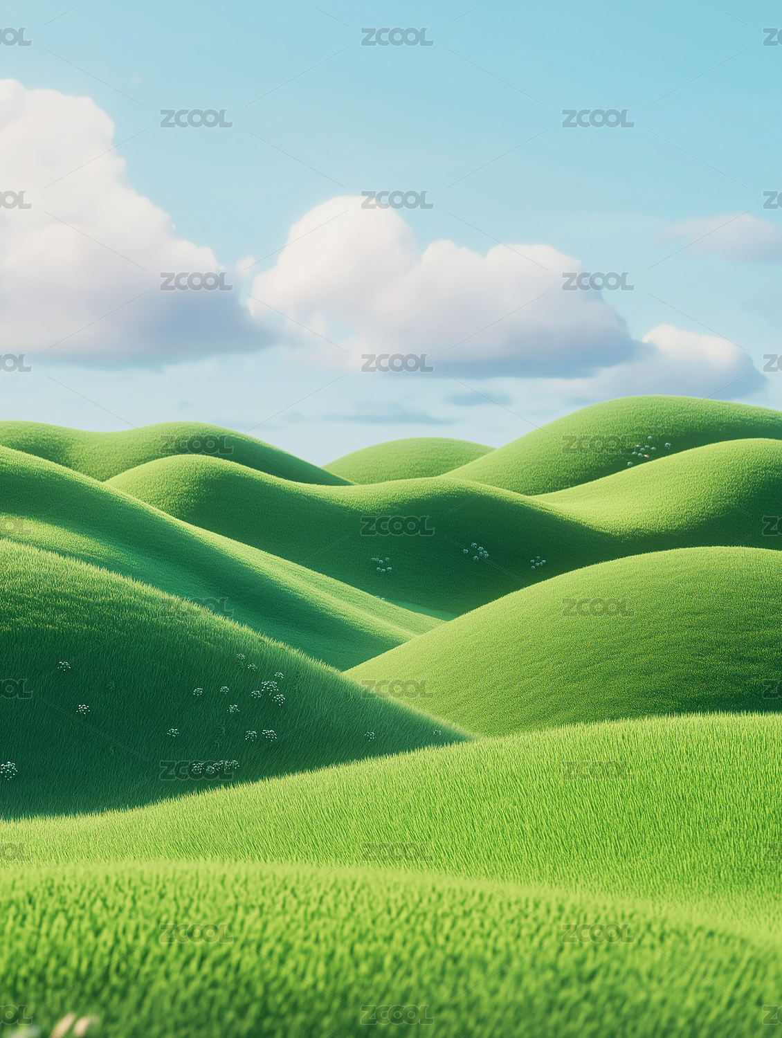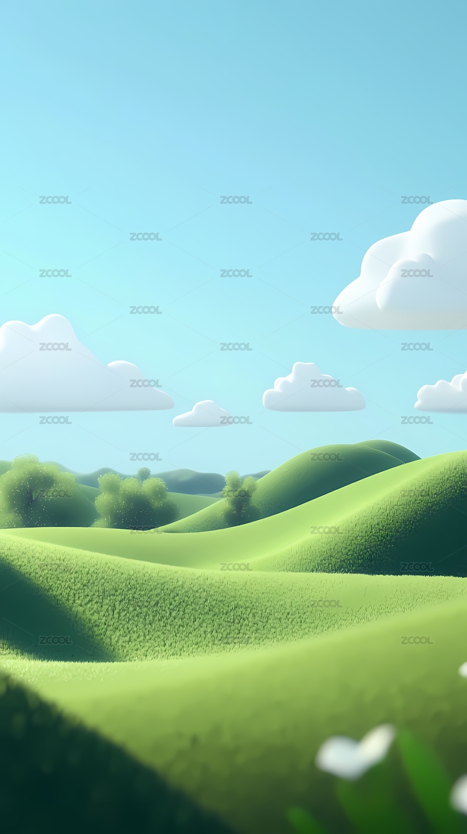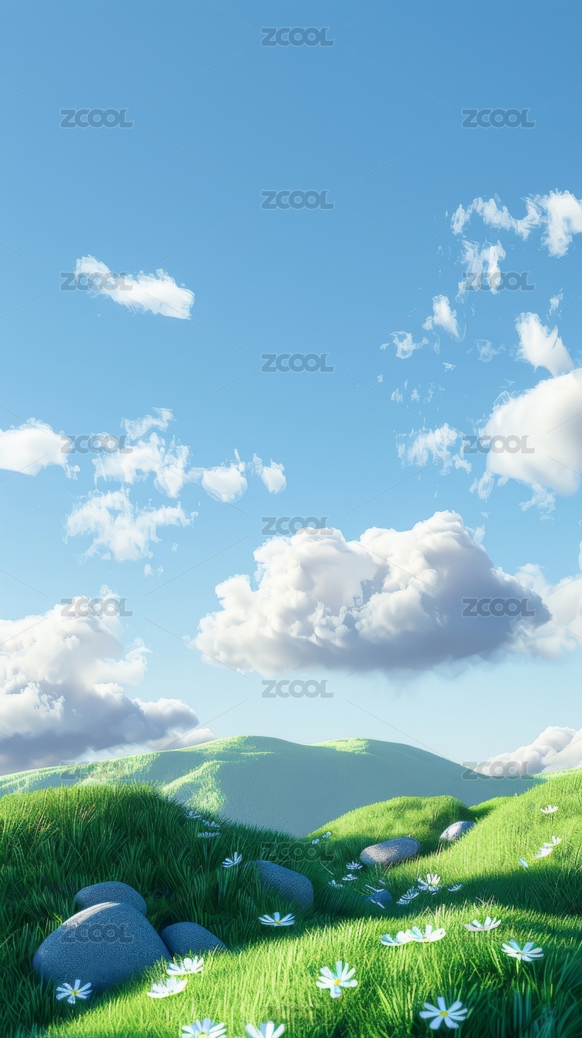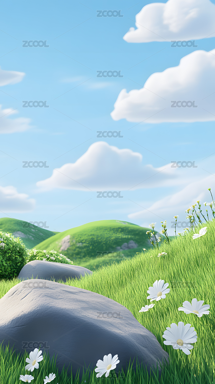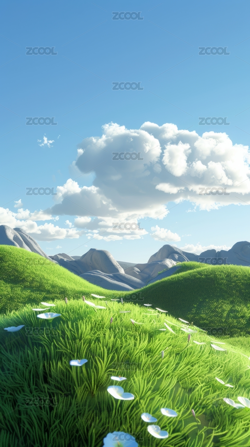可爱草地鲜花天空风景3D插画