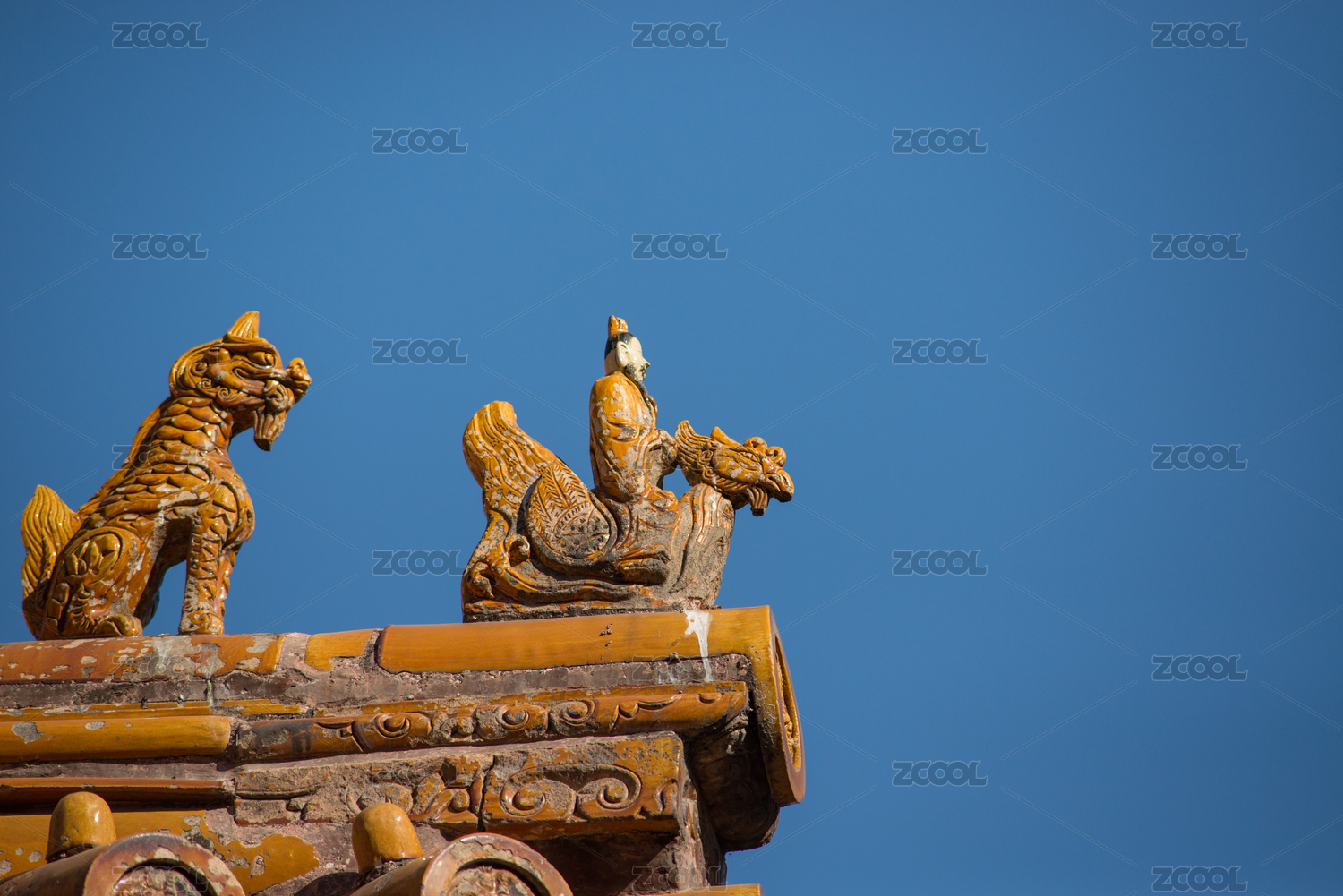 故宫屋脊檐口脊兽与仙人特写