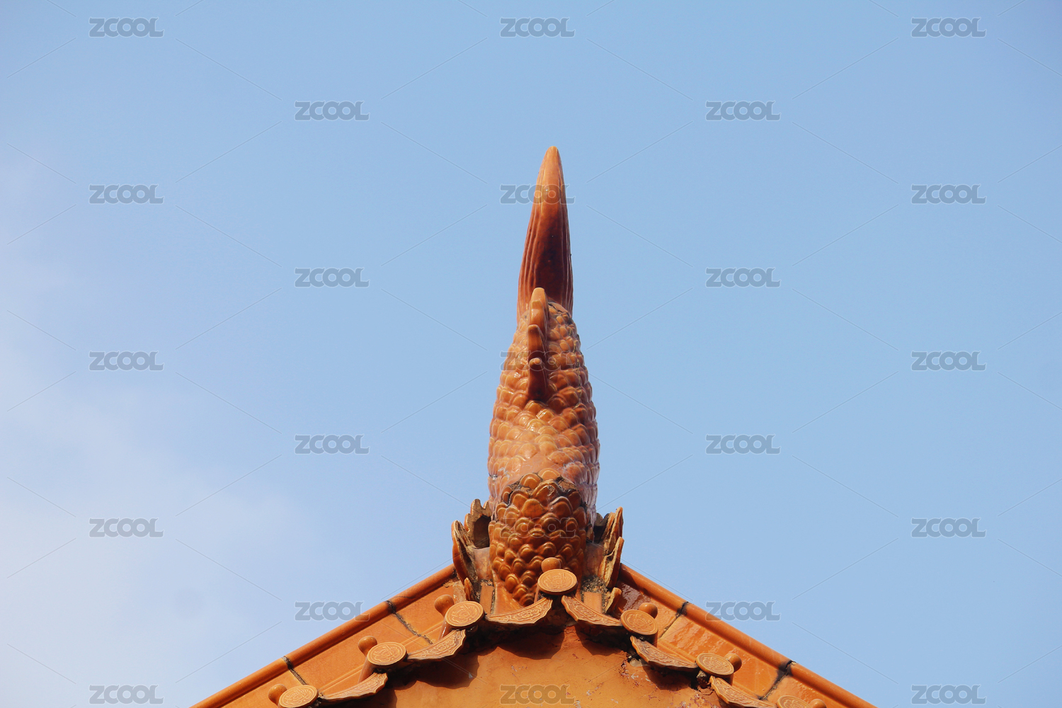 中国上海龙华寺正脊螭吻及力士灰塑
