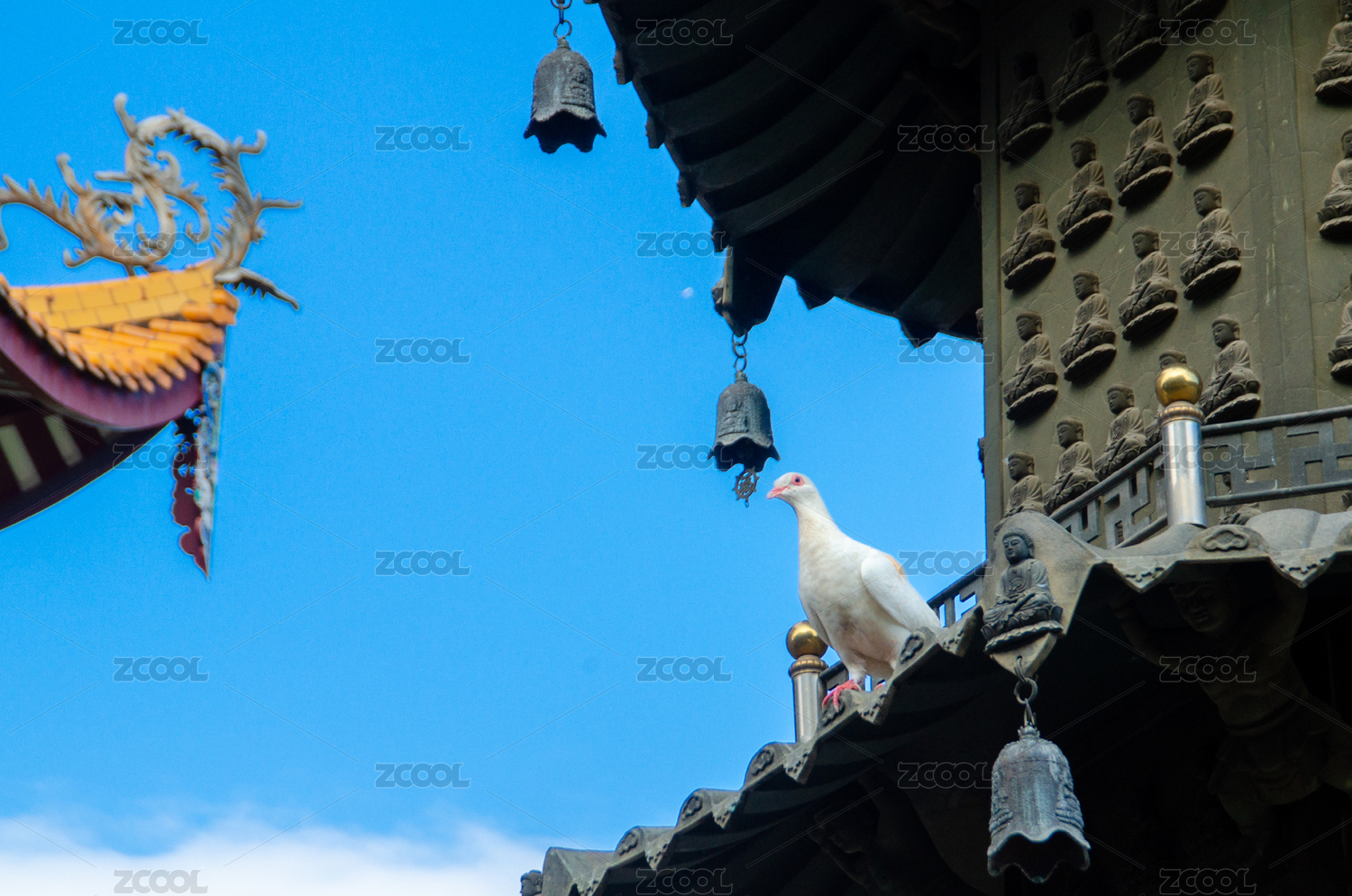 站在佛塔上的白鸽