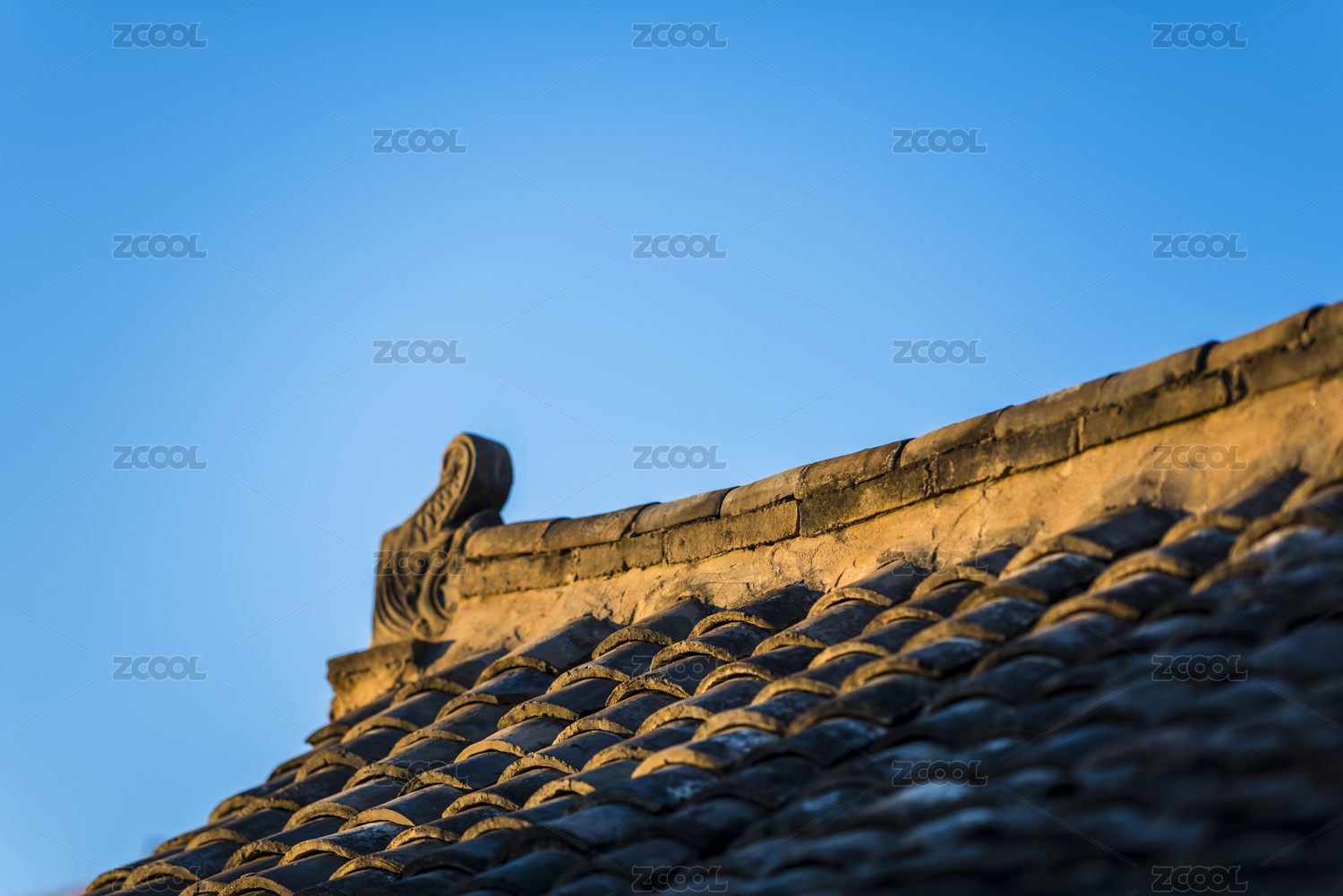 中国传统寺庙古建筑屋顶飞檐造型特写
