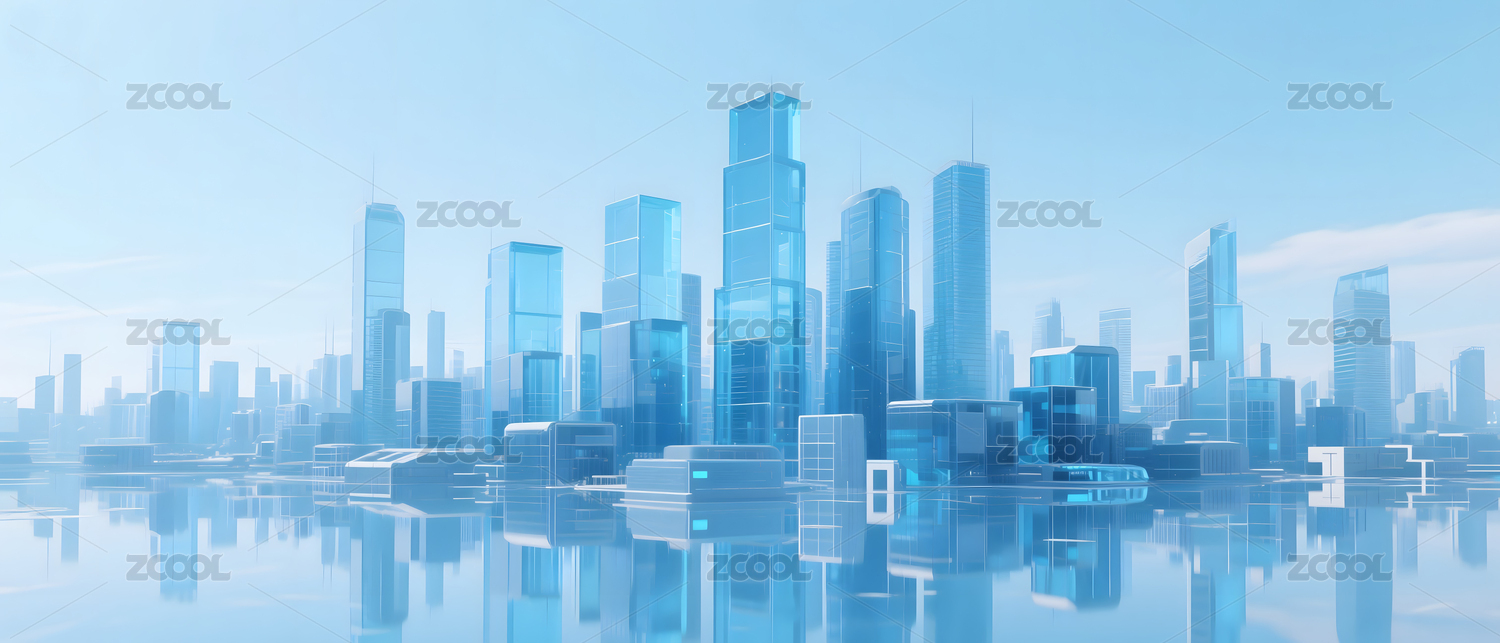 玻璃城市 蓝色 科技 AI 未来 摩天楼