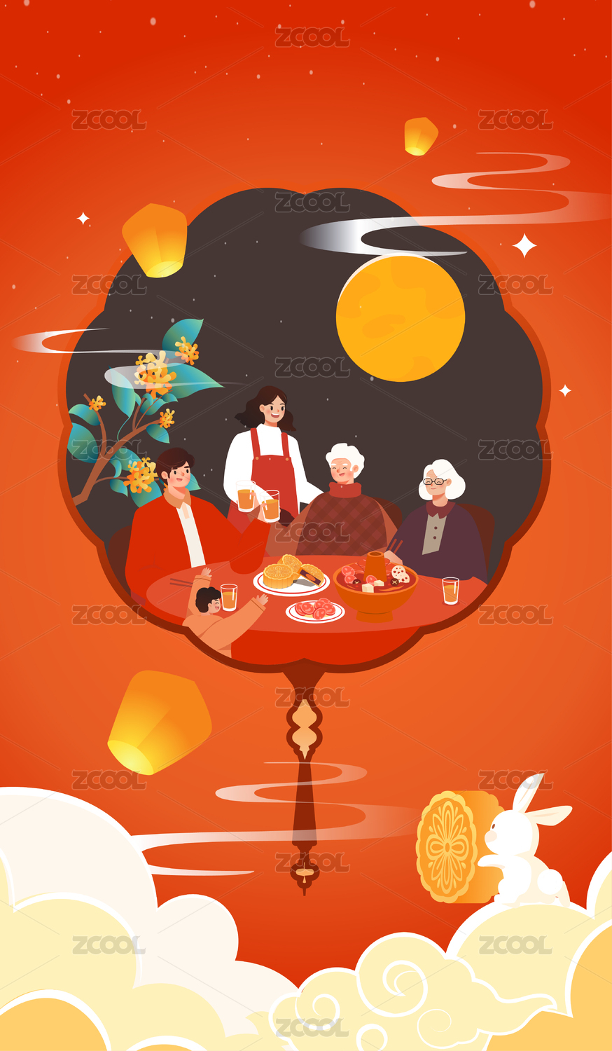 中秋团圆家庭插画
