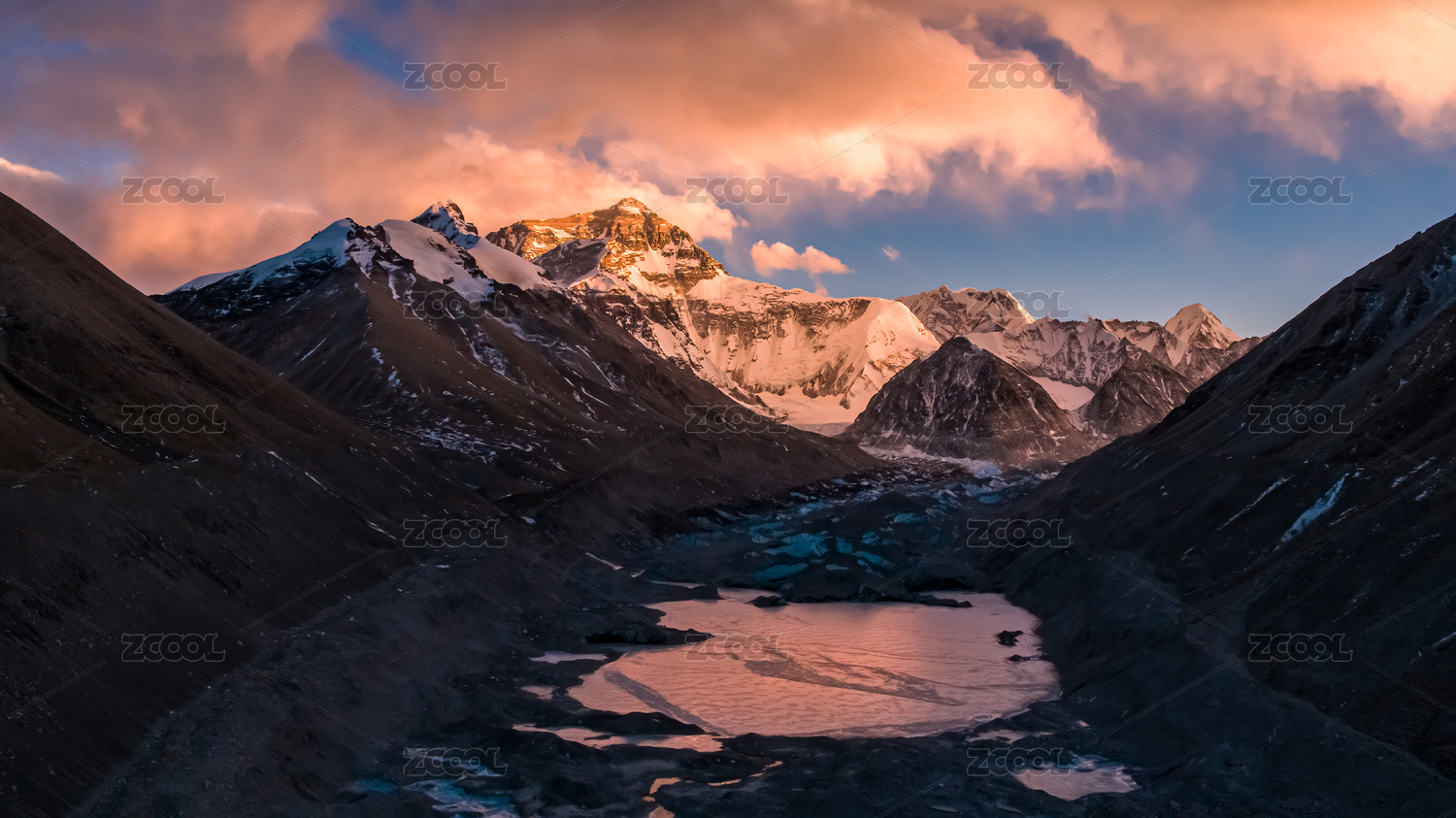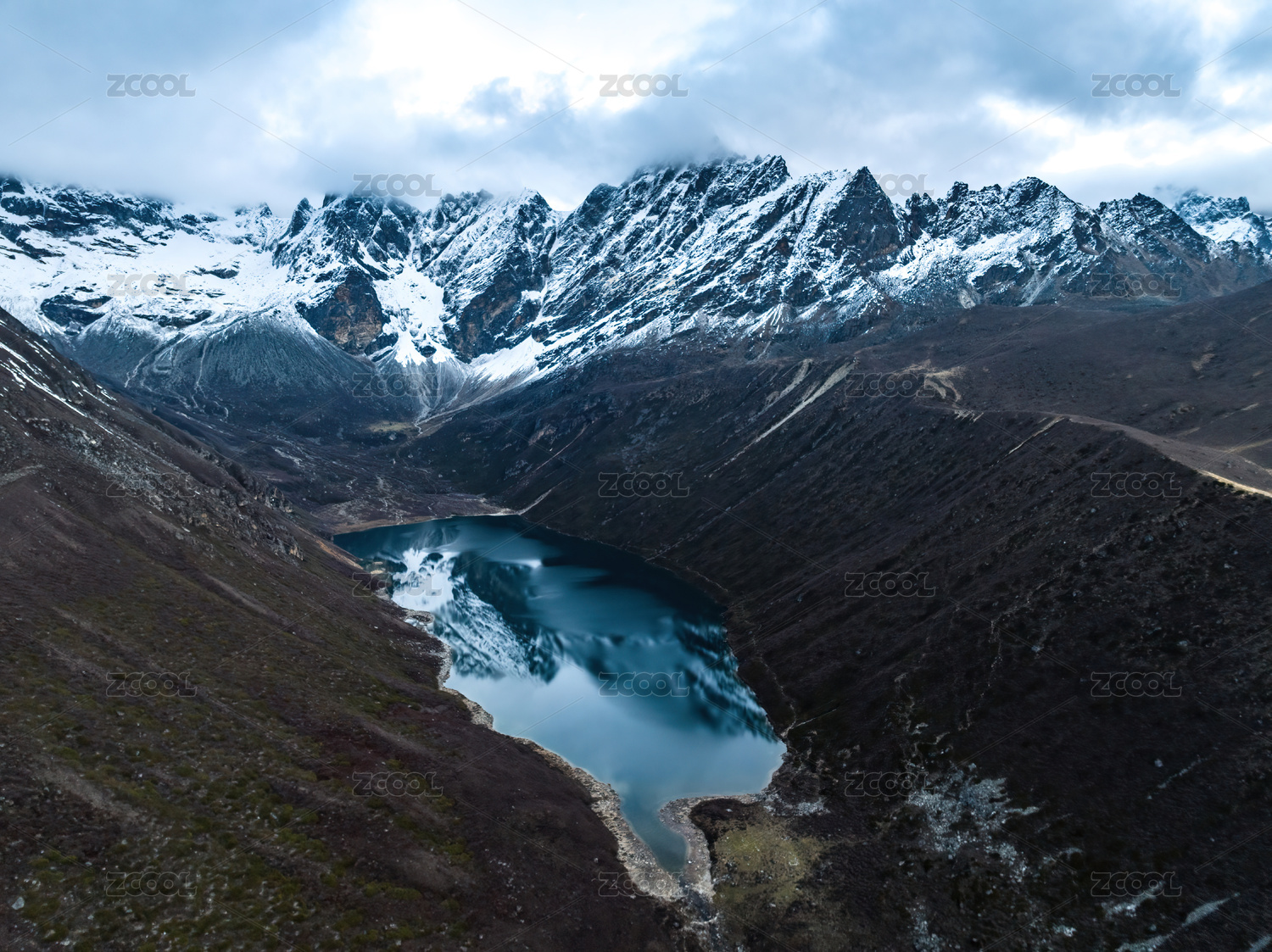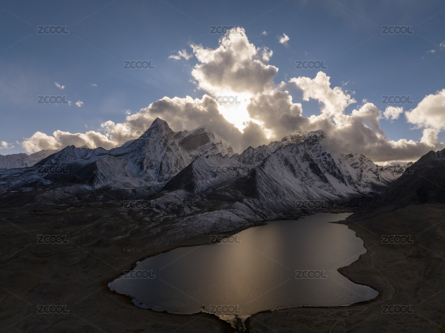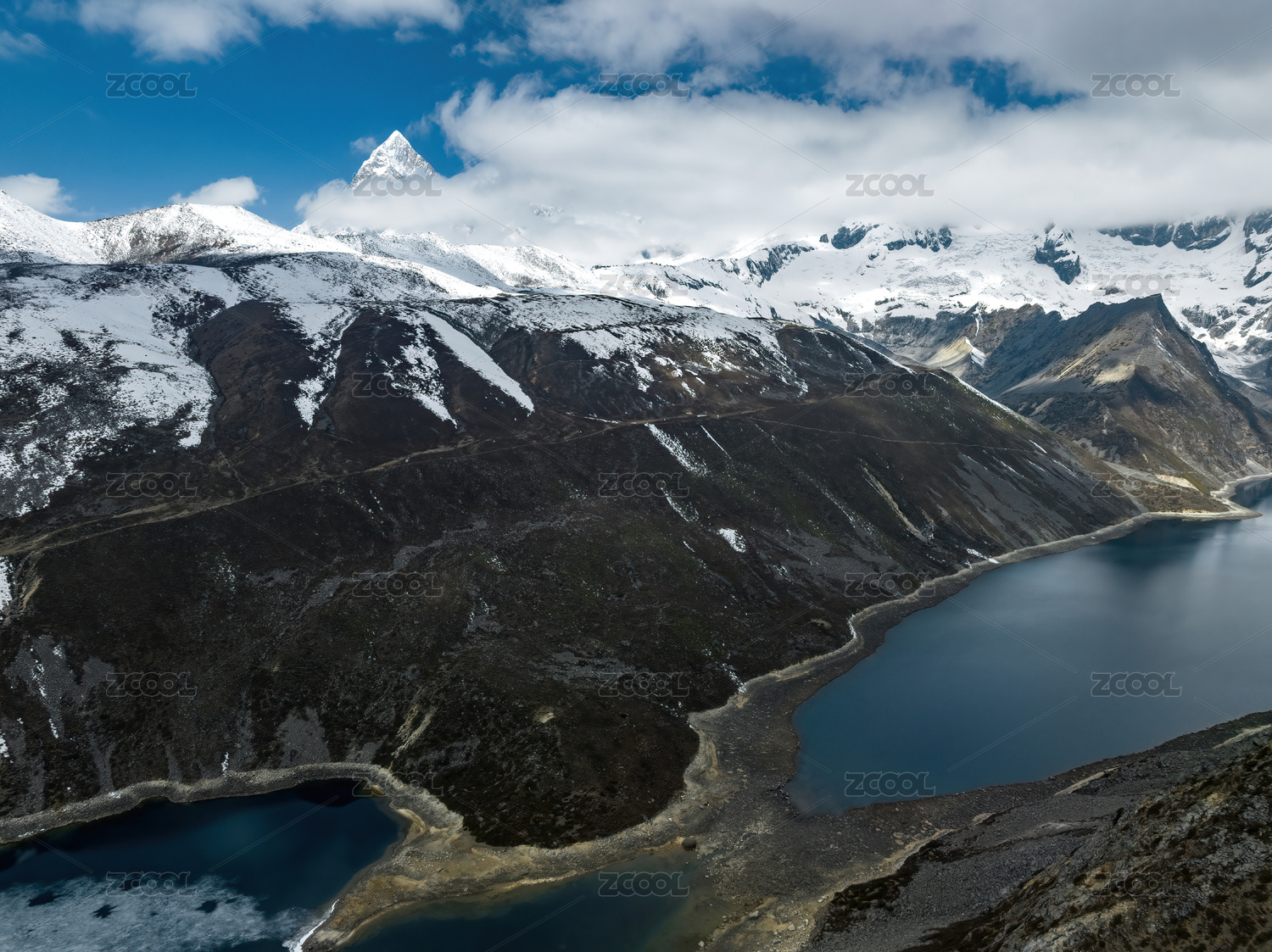 中国西藏日喀则定结宗错湖阿玛直米雪山航拍