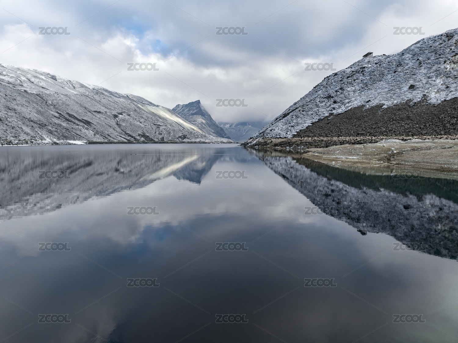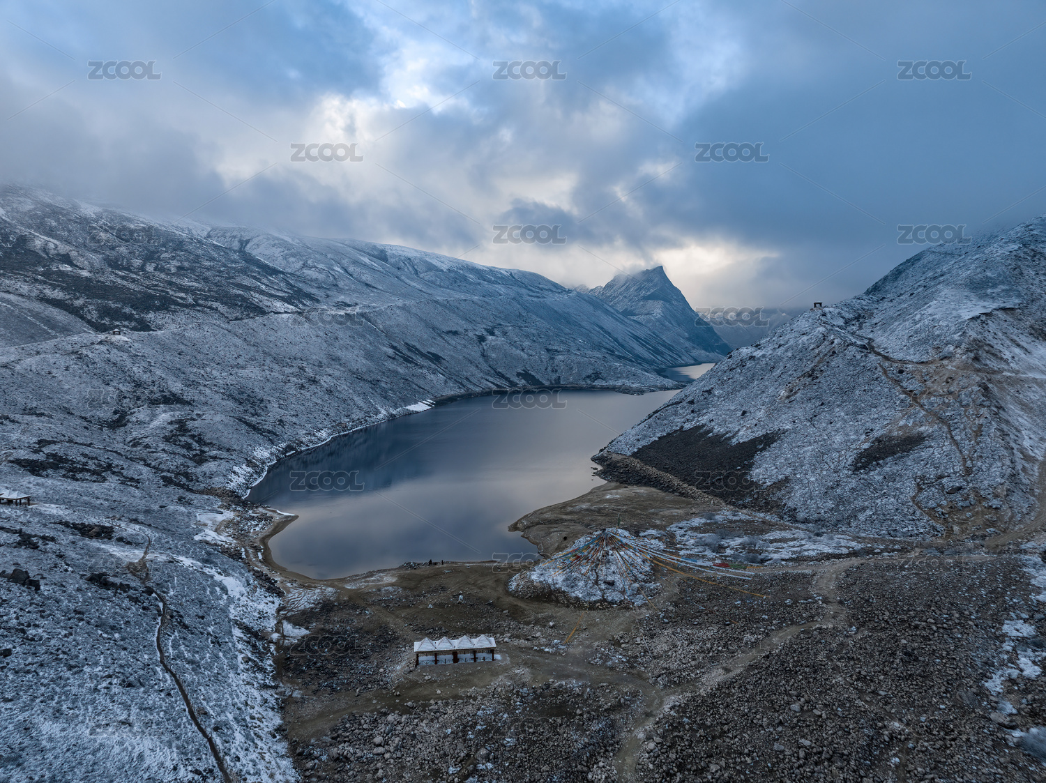 雪山,湖,雪,云,天空,冰,高原,航拍视角,冬季,冬天