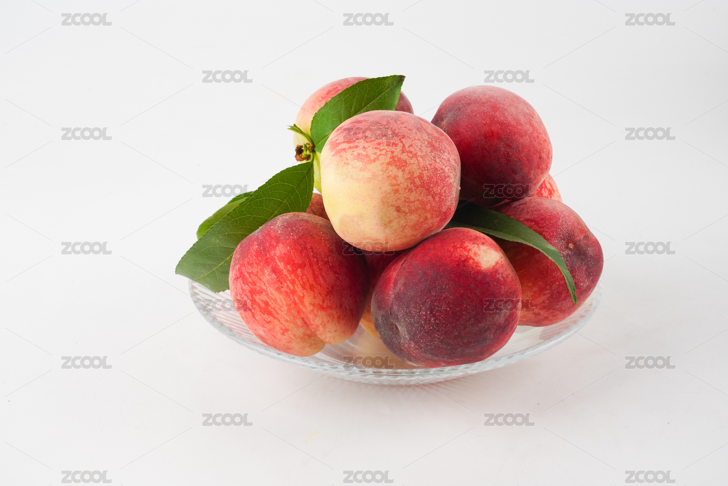 白背景上一盆新鲜桃子