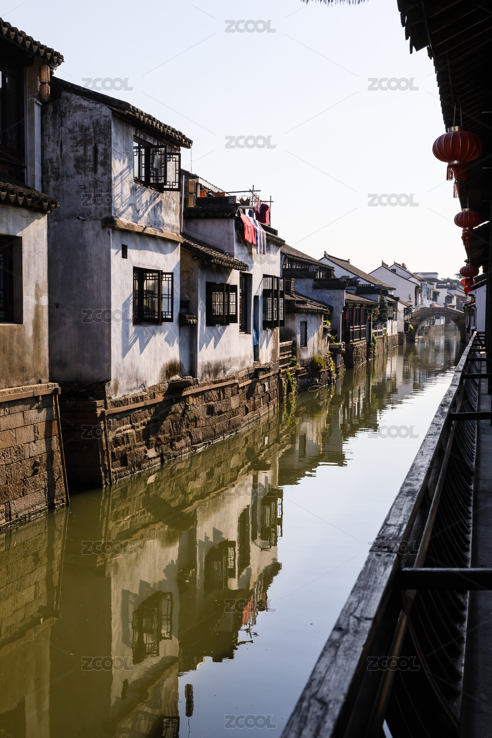 上海罗店古镇|阳光照亮河边的徽式复古建筑