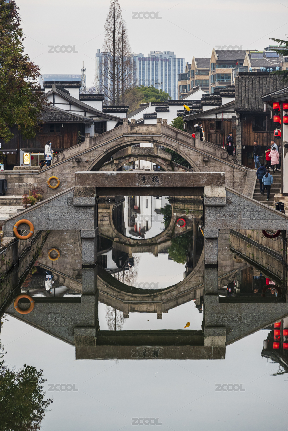 无锡锡山古镇小桥流水人家的江南水乡的景色