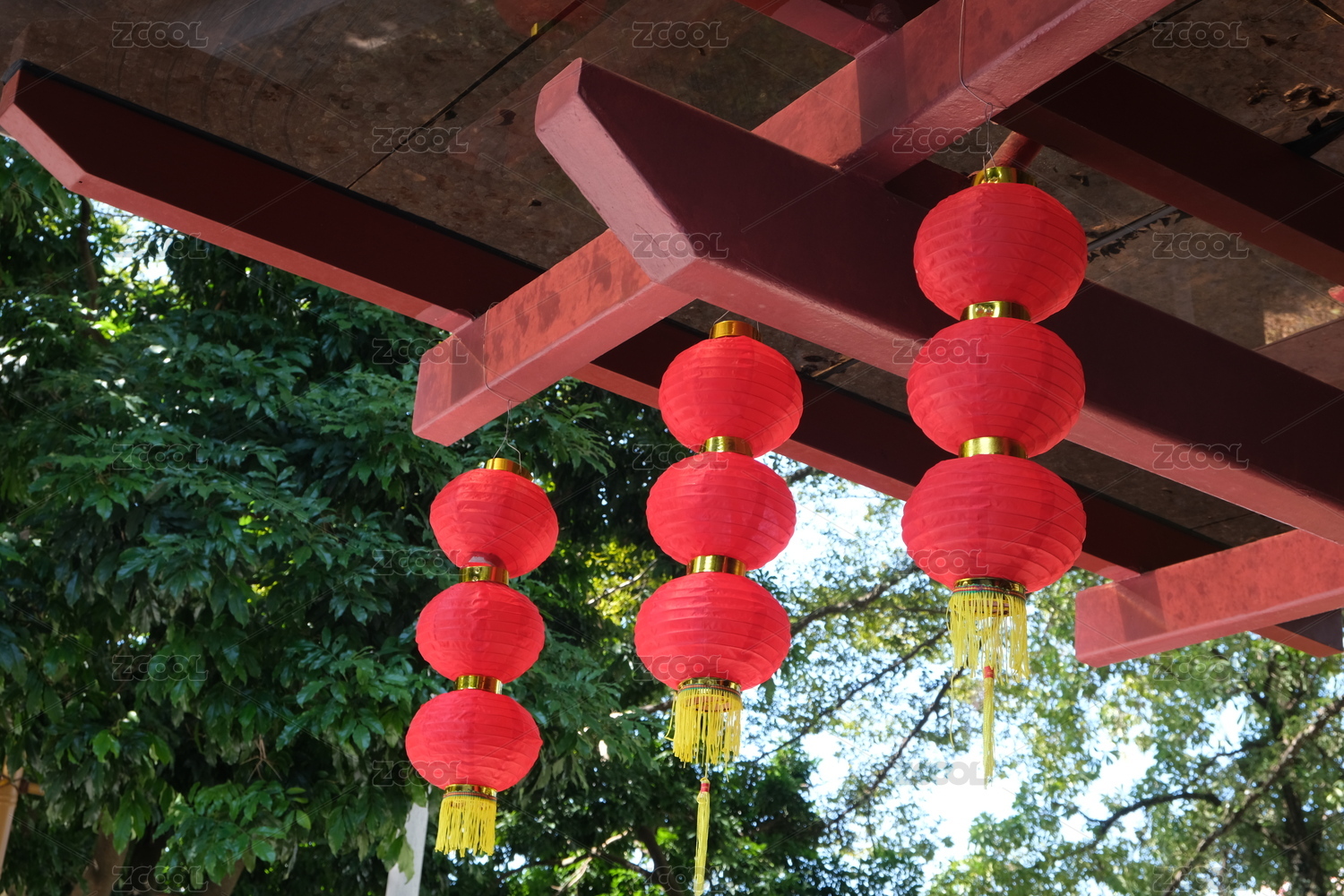 户外悬挂的中国传统红灯笼