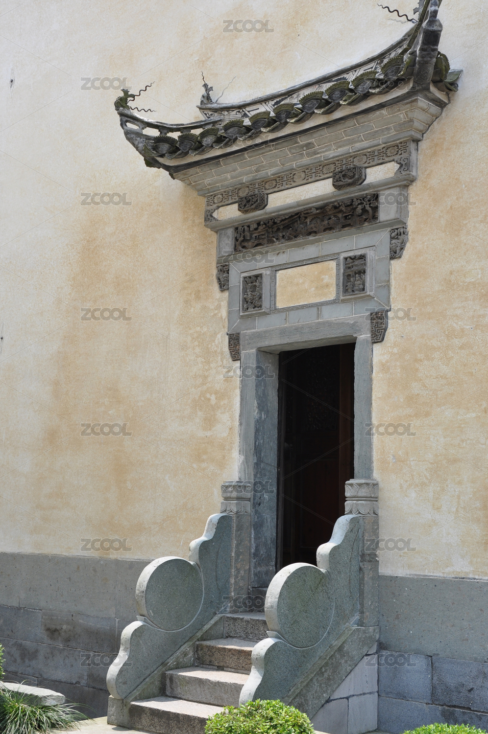 徽派民居门罩门头,中国安徽省黄山市徽州区呈坎