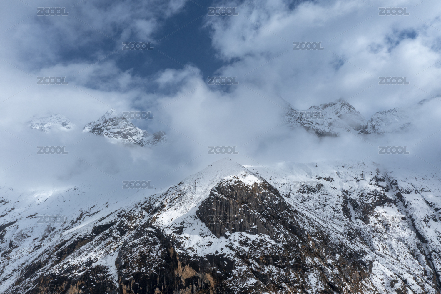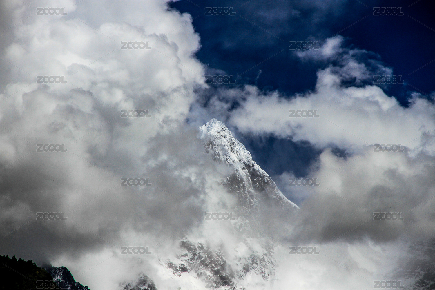 在云雾中露出一角的贡嘎雪山