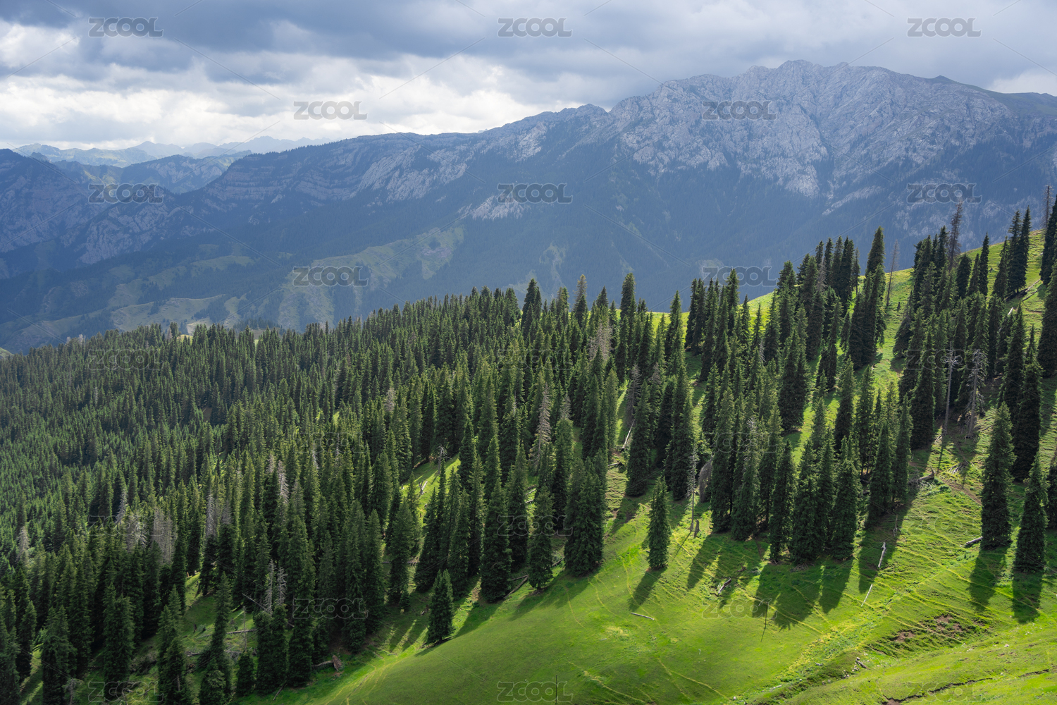 中国新疆伊犁喀拉峻旅游景区草原上的针叶林