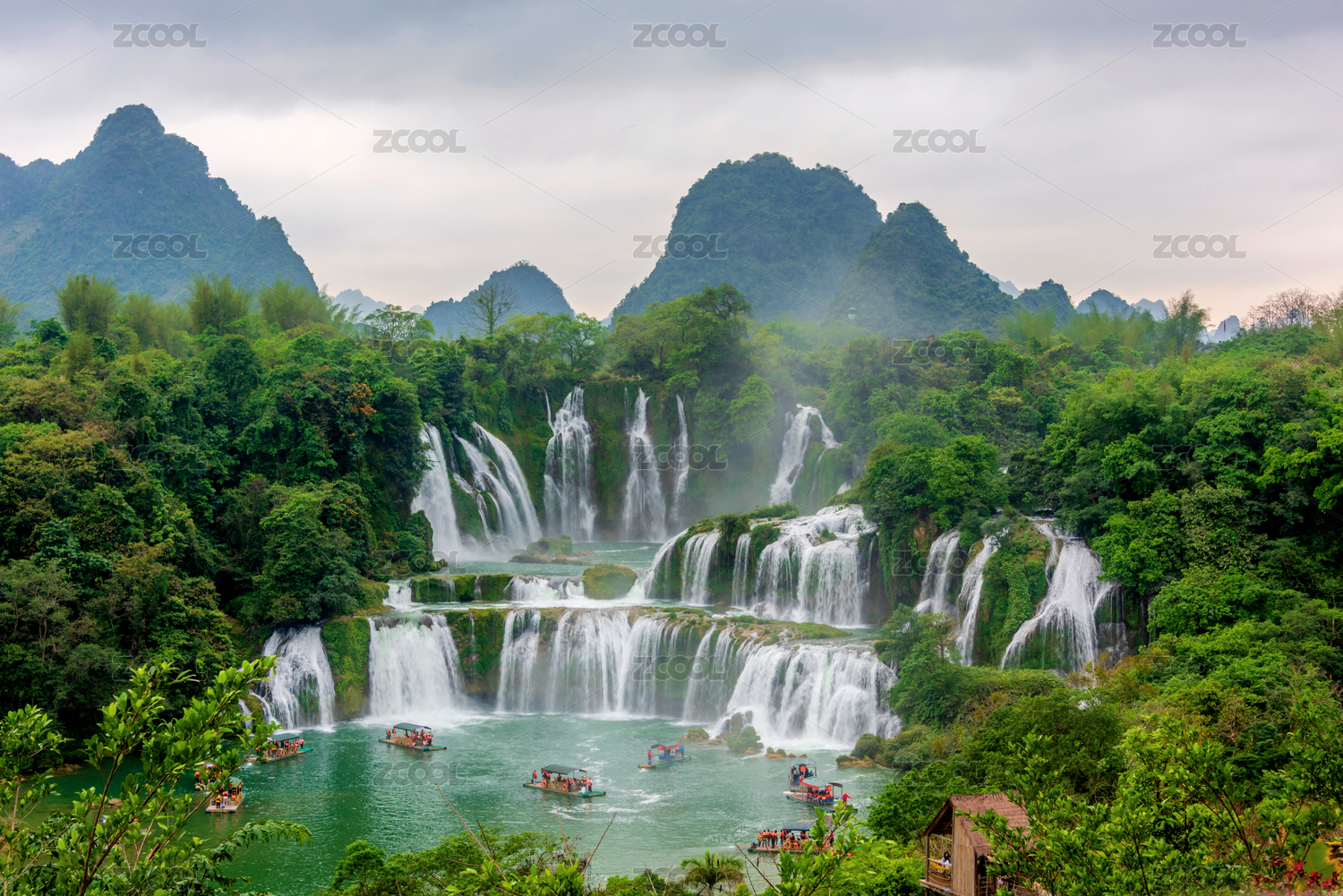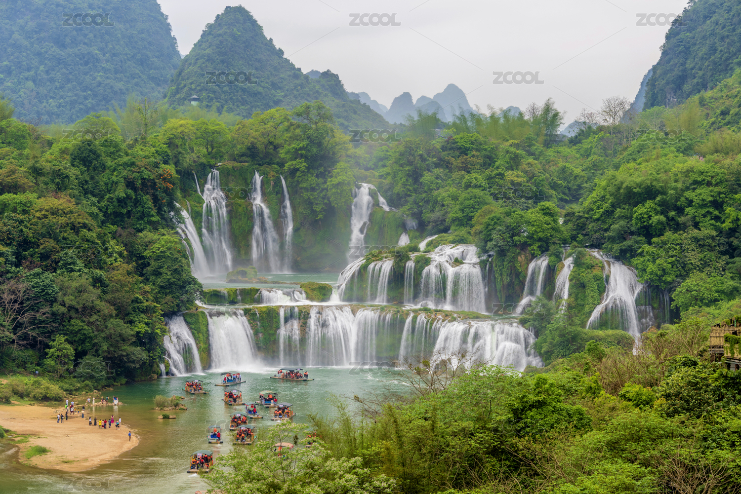 中国广西省崇左市边境跨国德天瀑布阴天景色