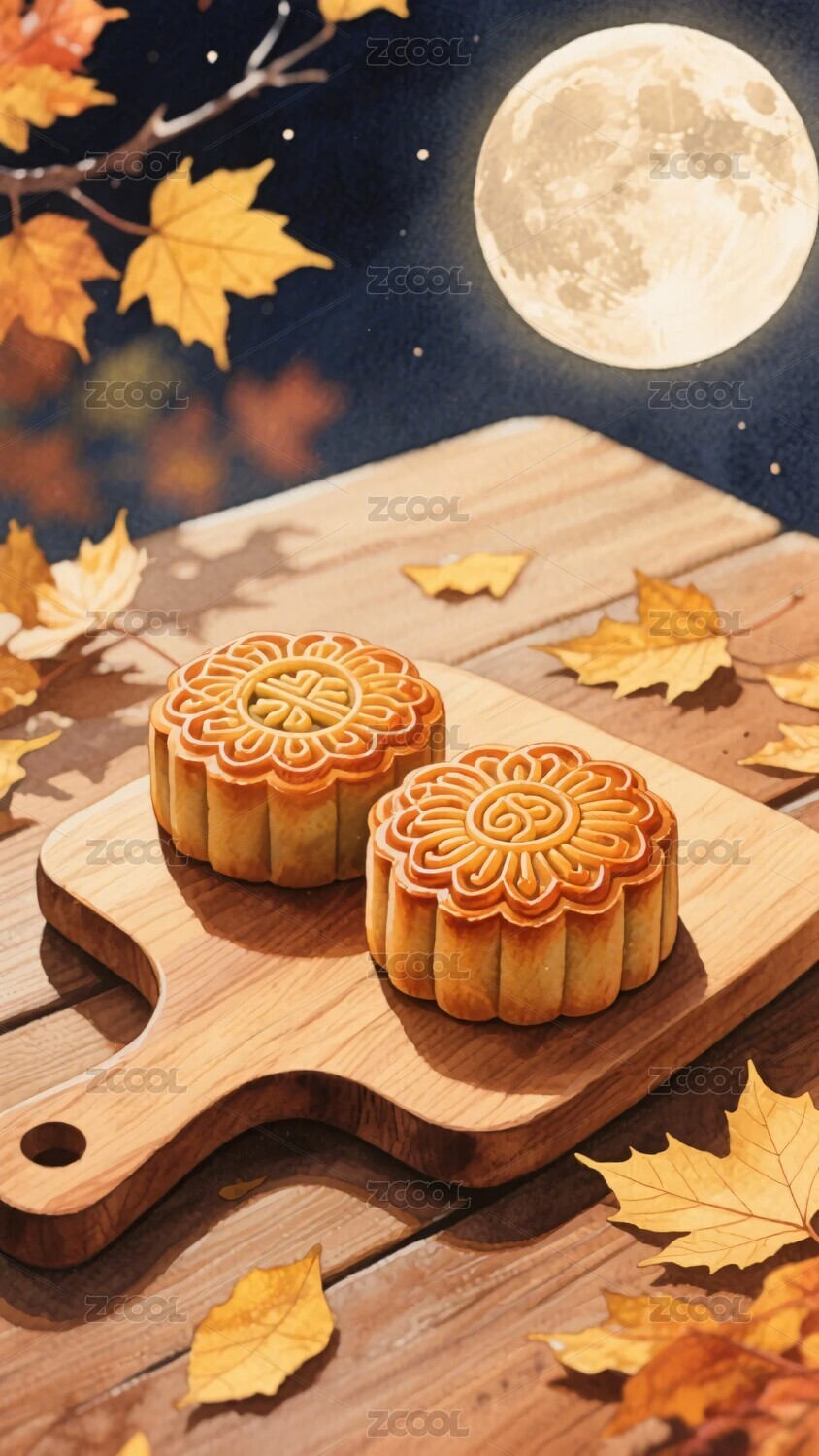 中秋月饼与满月场景图