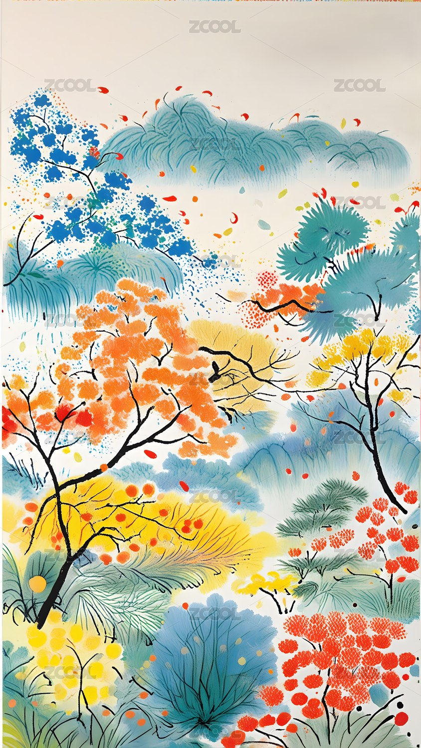 唯美山水树木写意节气插画