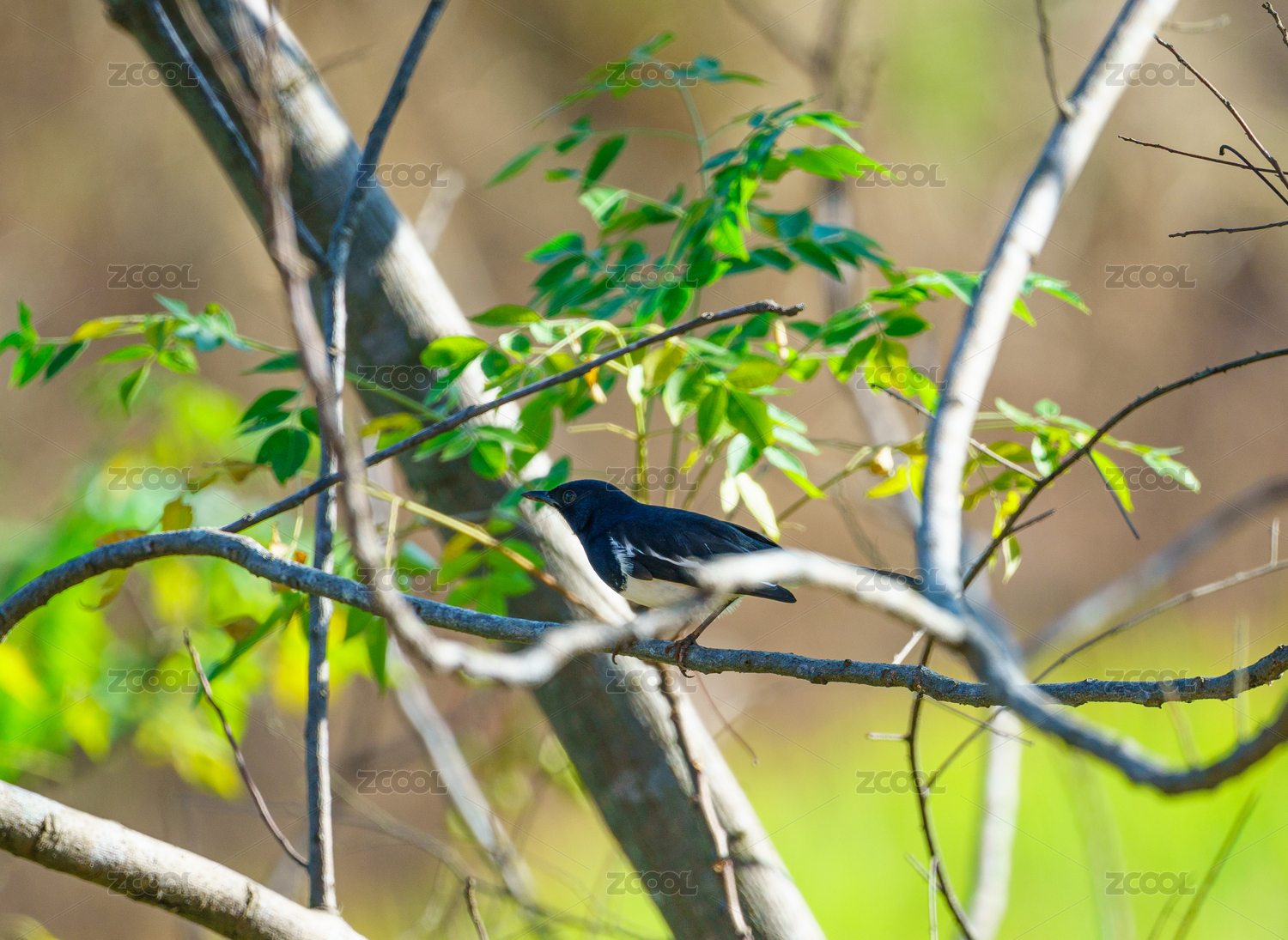 一只鸟在树上栖息