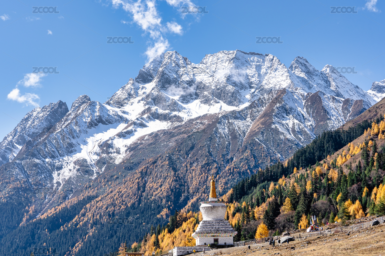 中国四川小金县四姑娘山双桥沟秋天雪山白塔