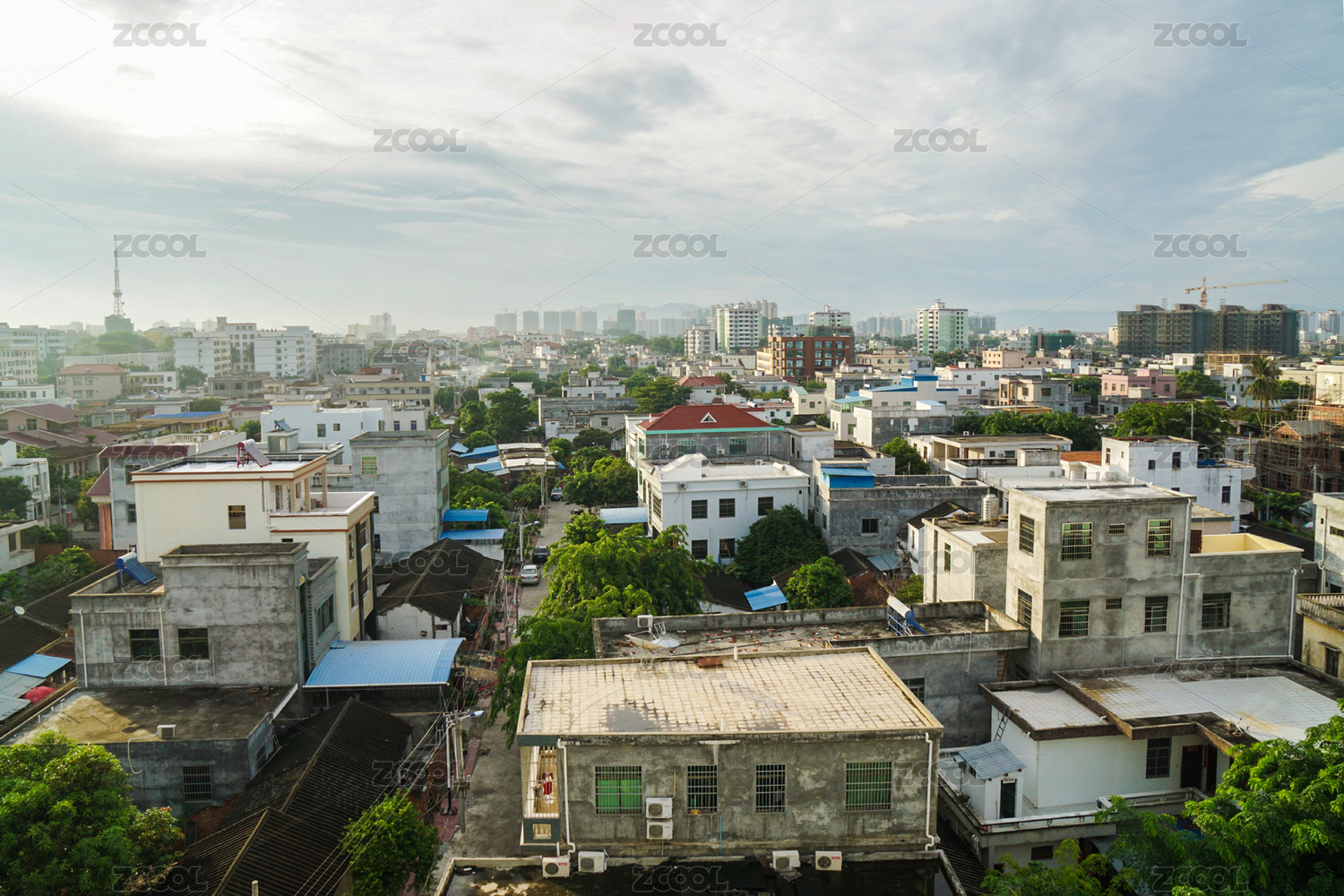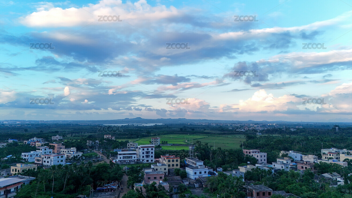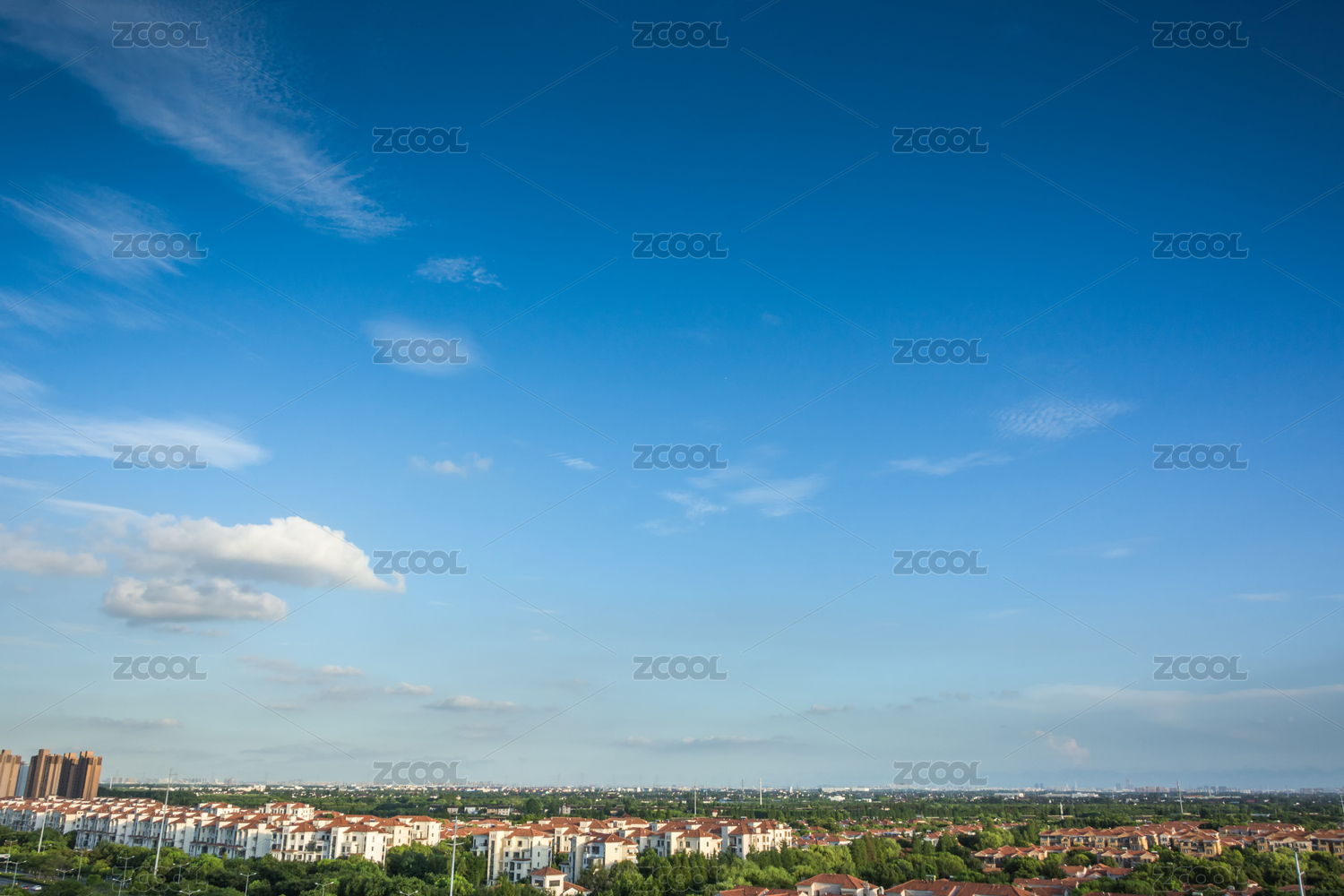 蓝天白云下的草地、别墅群与房地产楼盘 中国广东省佛山市