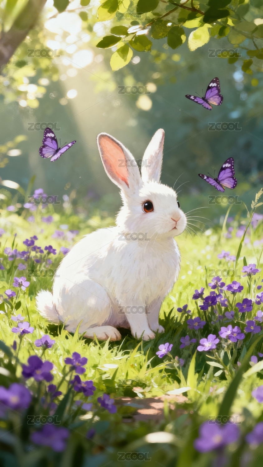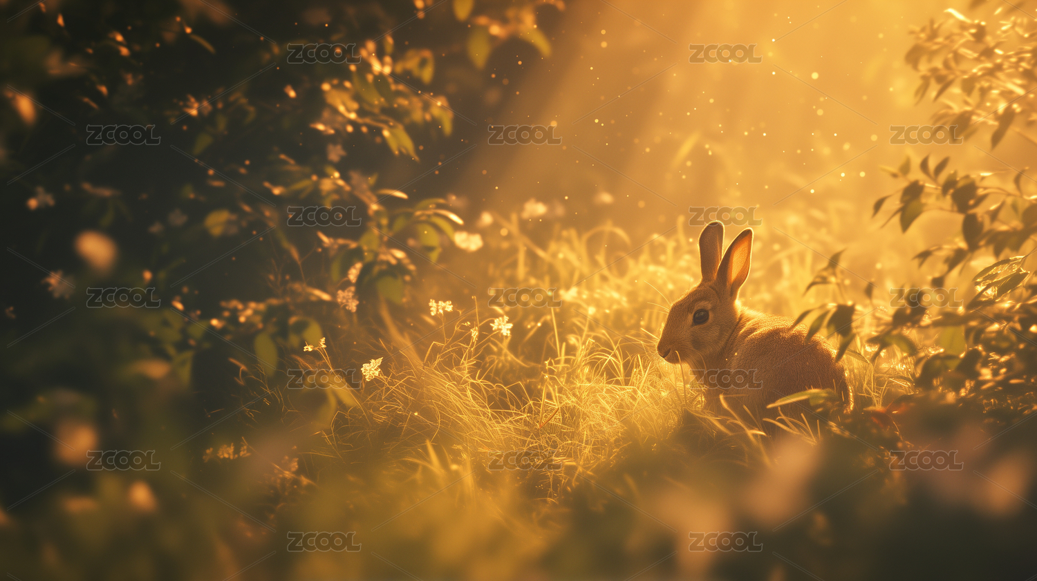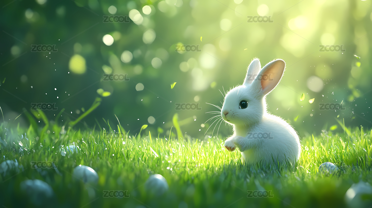 春天,柔和,自然,清新,兔子,白色,草地,绿意,光斑,萌宠