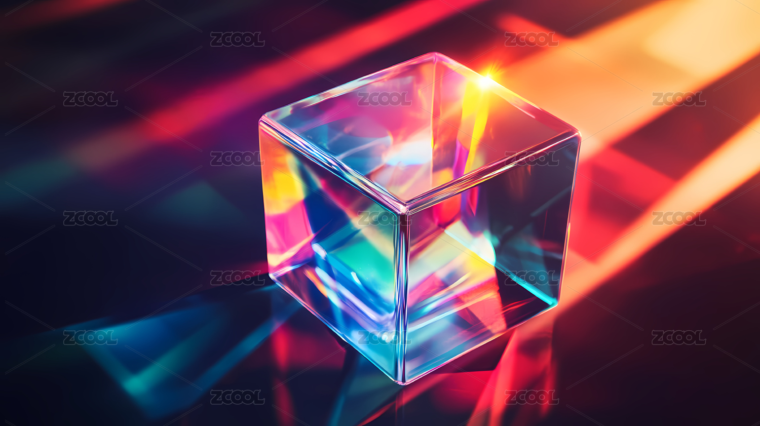 透明立方体与多彩光线